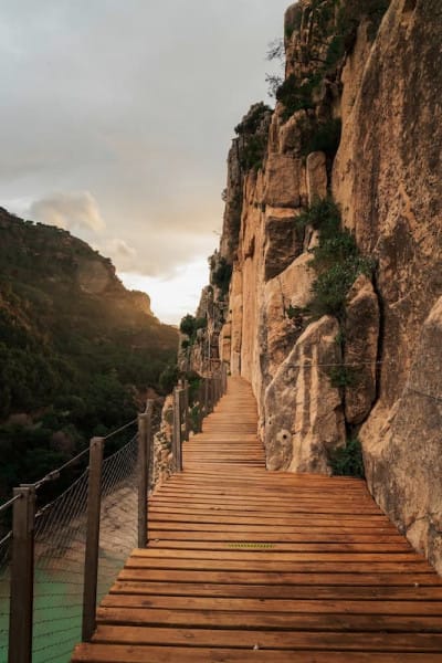 The restored trail, once dubbed the most dangerous in the world, now offers a safe and unforgettable experience. During your hike in Caminito del Rey, you'll follow historic railway lines, pass through tunnels and ravines, and cross the iconic final suspension bridge before reaching El Chorro.