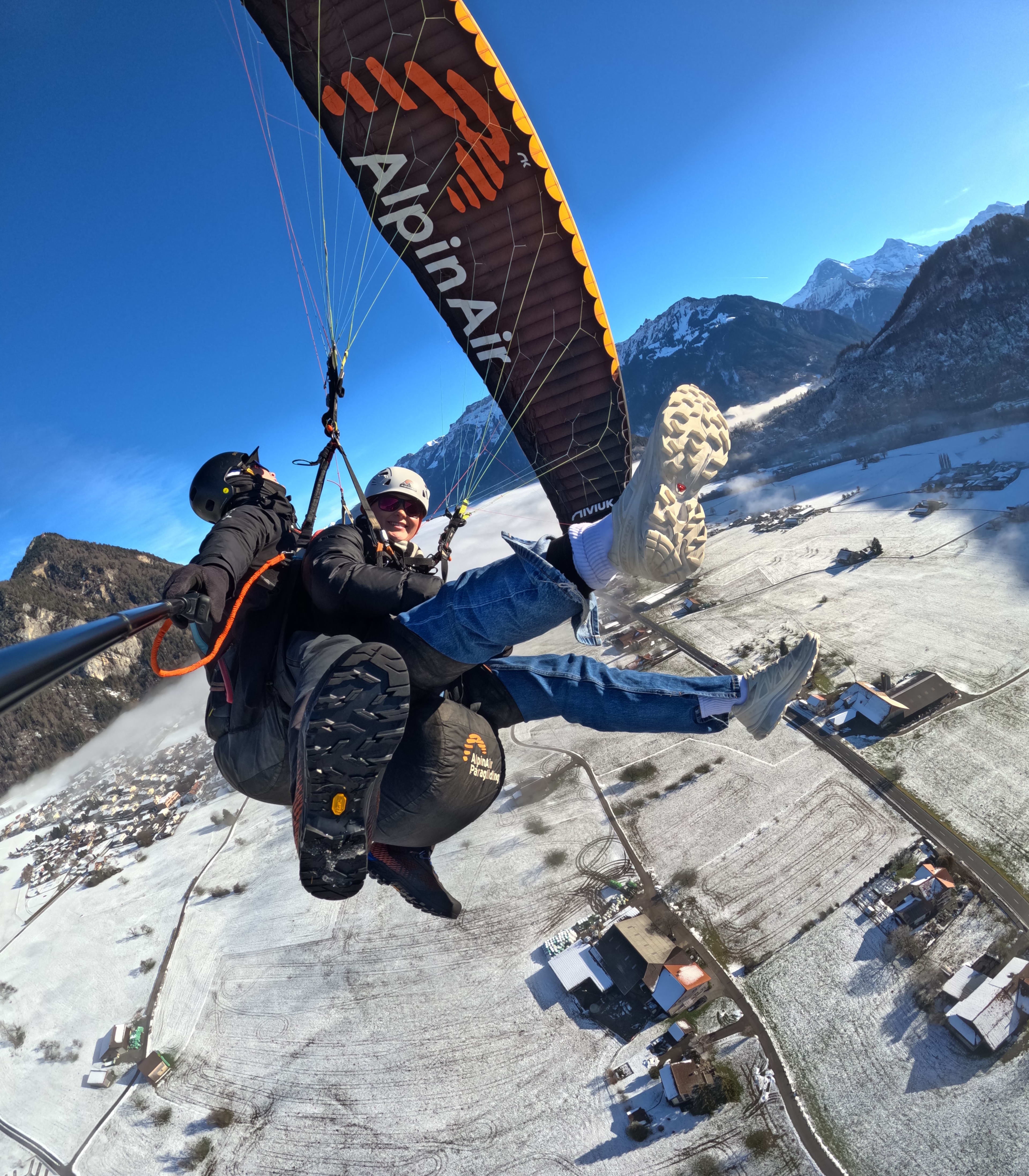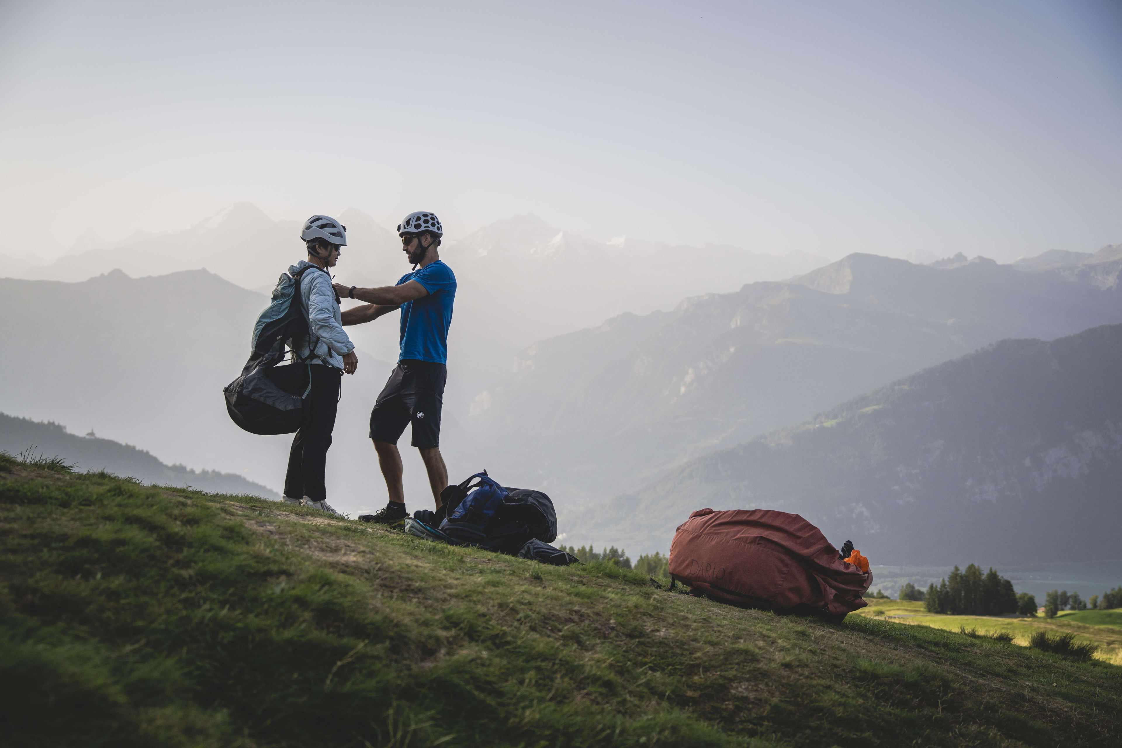 To begin your paragliding experience in Beatenberg, AlpinAir offers free transportation from Interlaken. So, after being picked up from your confirmed location in Interlaken, you will be driven to the launch site in the charming town of Beatenberg. Once there, you will receive all the necessary equipment and safety briefing so that you are ready for the sky. Then, together with your experienced paragliding pilot, you will lightly run for the take-off point and start your 10-20-minute paragliding flight over the picturesque Beatenberg until you finally land in the centre of Interlaken, on the beautiful Höhematte.