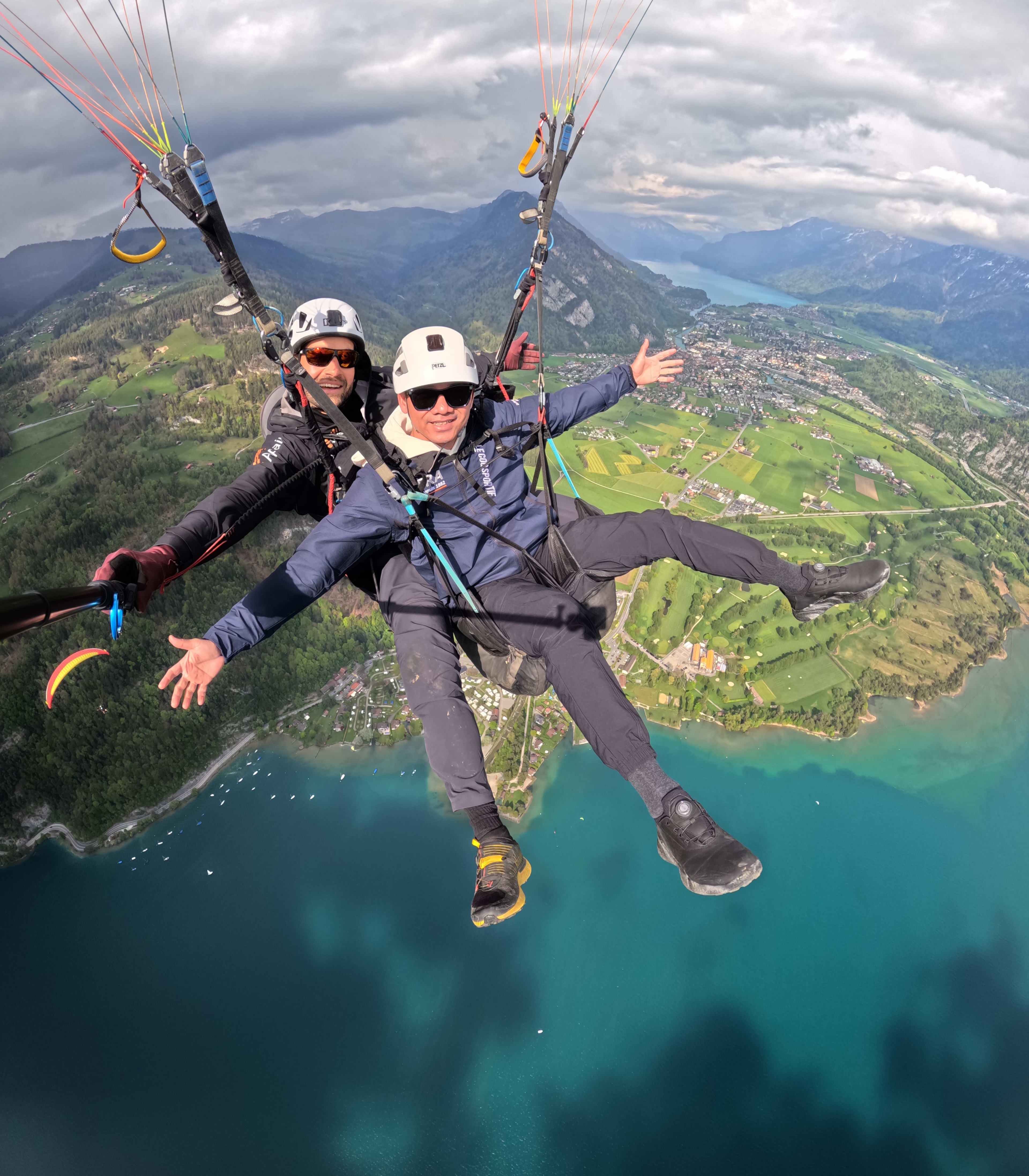 Tandem Paragliding flight above Interlaken, from Beatenberg
