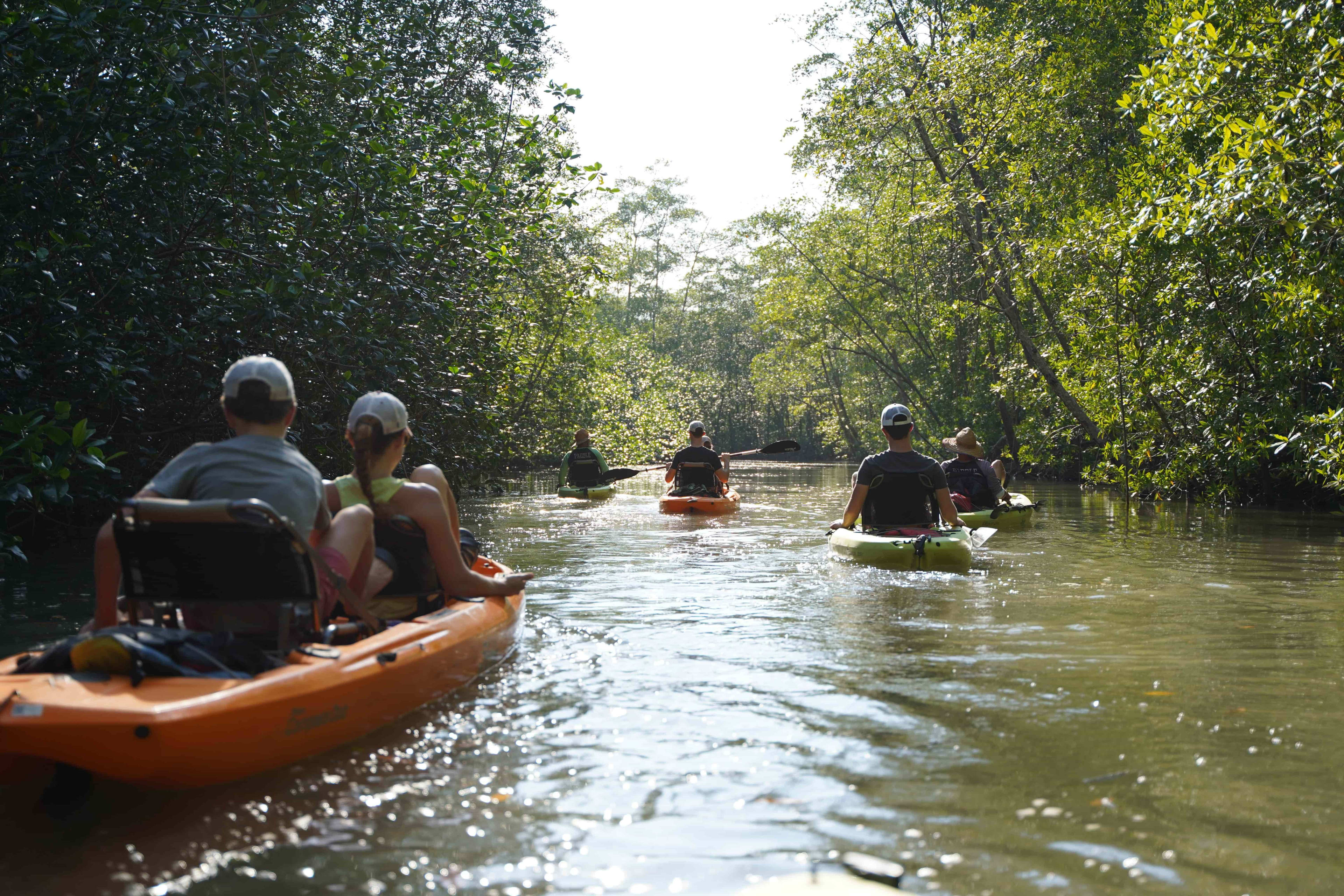 - Acceso sigiloso a estrechos y tranquilos túneles de manglares inaccesibles para las embarcaciones turísticas motorizadas.