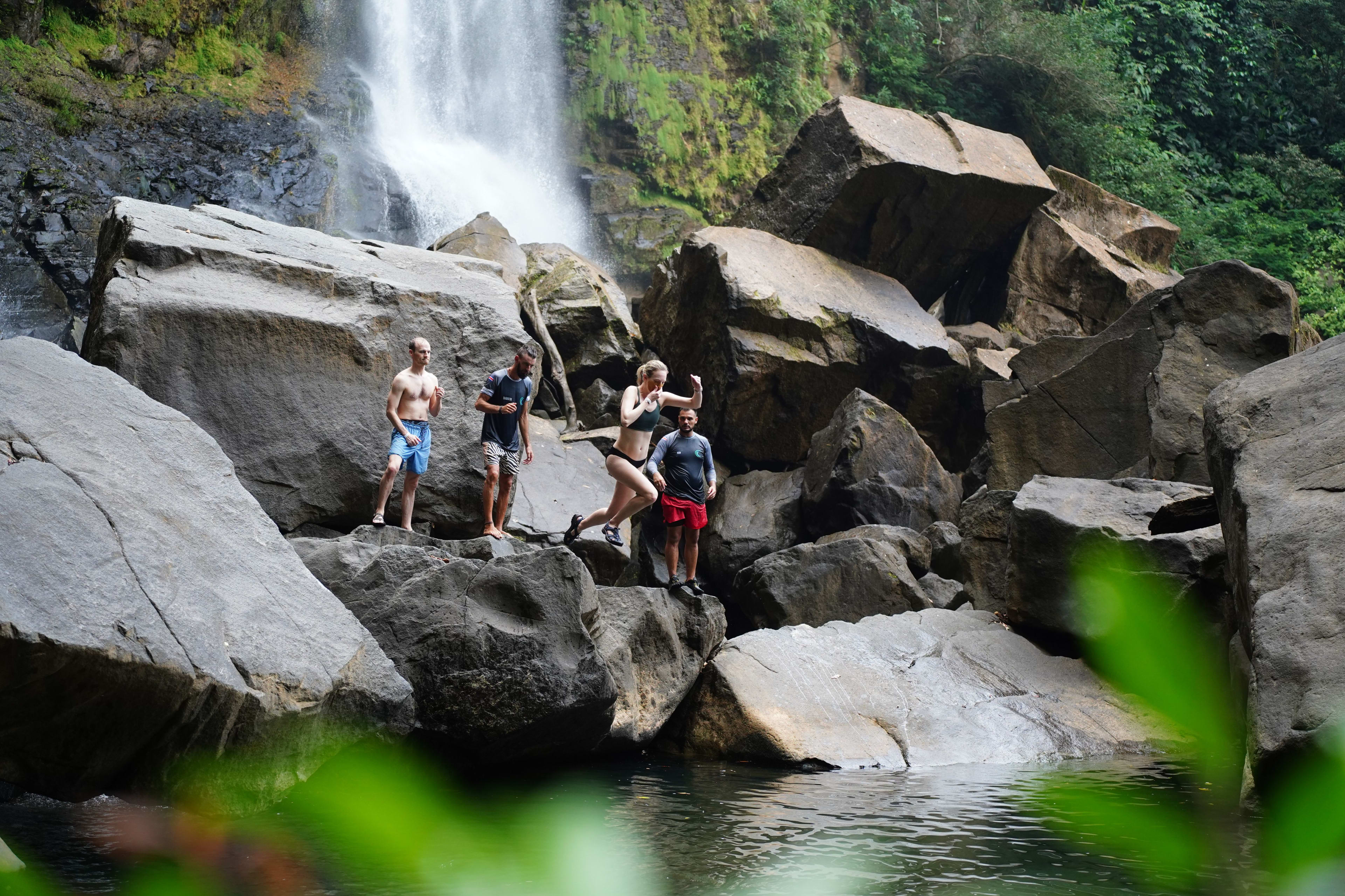 - Exploración de las cataratas superiores: aperitivos de fruta local, baño y aplicación de mascarilla de arcilla natural de río (25-45 minutos).