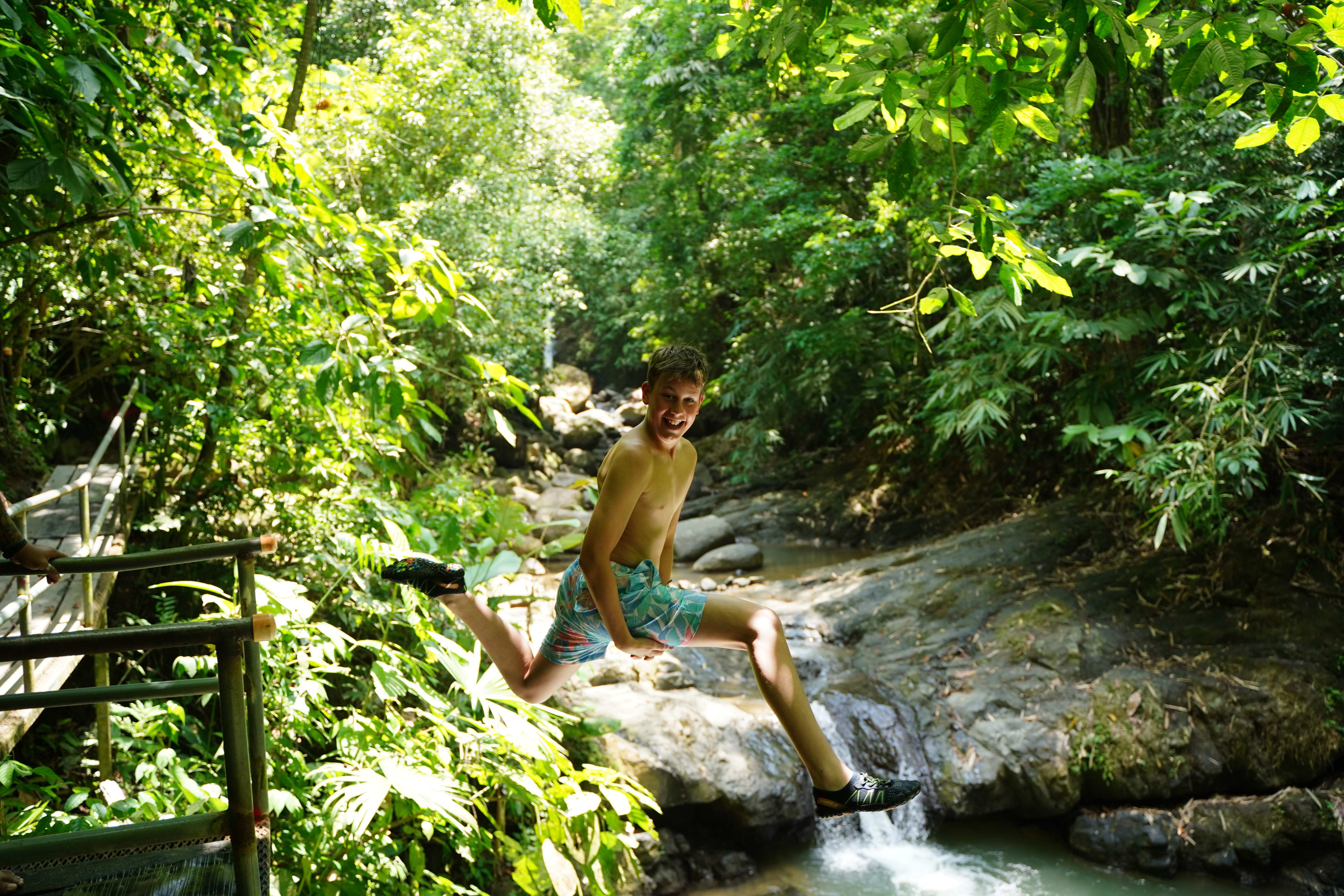 Este safari por las cataratas es un viaje de alta acción diseñado para quienes desean experimentar la fuerza bruta de la selva. A diferencia de las visitas turísticas estándar, esta experiencia presenta una filosofía de "desafío por elección", guiada por profesionales certificados en rescate acuático. Visitará tres cascadas distintas, cada una de ellas con características únicas: un tobogán de roca natural de 6 metros que le lanzará directamente a las profundas aguas, y varias plataformas de salto que van desde los 1,5 metros hasta los 9 metros. Sus guías no se limitan a apuntar desde la orilla, sino que están en el agua con usted, demostrándole físicamente las técnicas seguras de despegue y aterrizaje al tiempo que realizan comprobaciones de profundidad para garantizar que cada salto se realiza con la máxima seguridad.