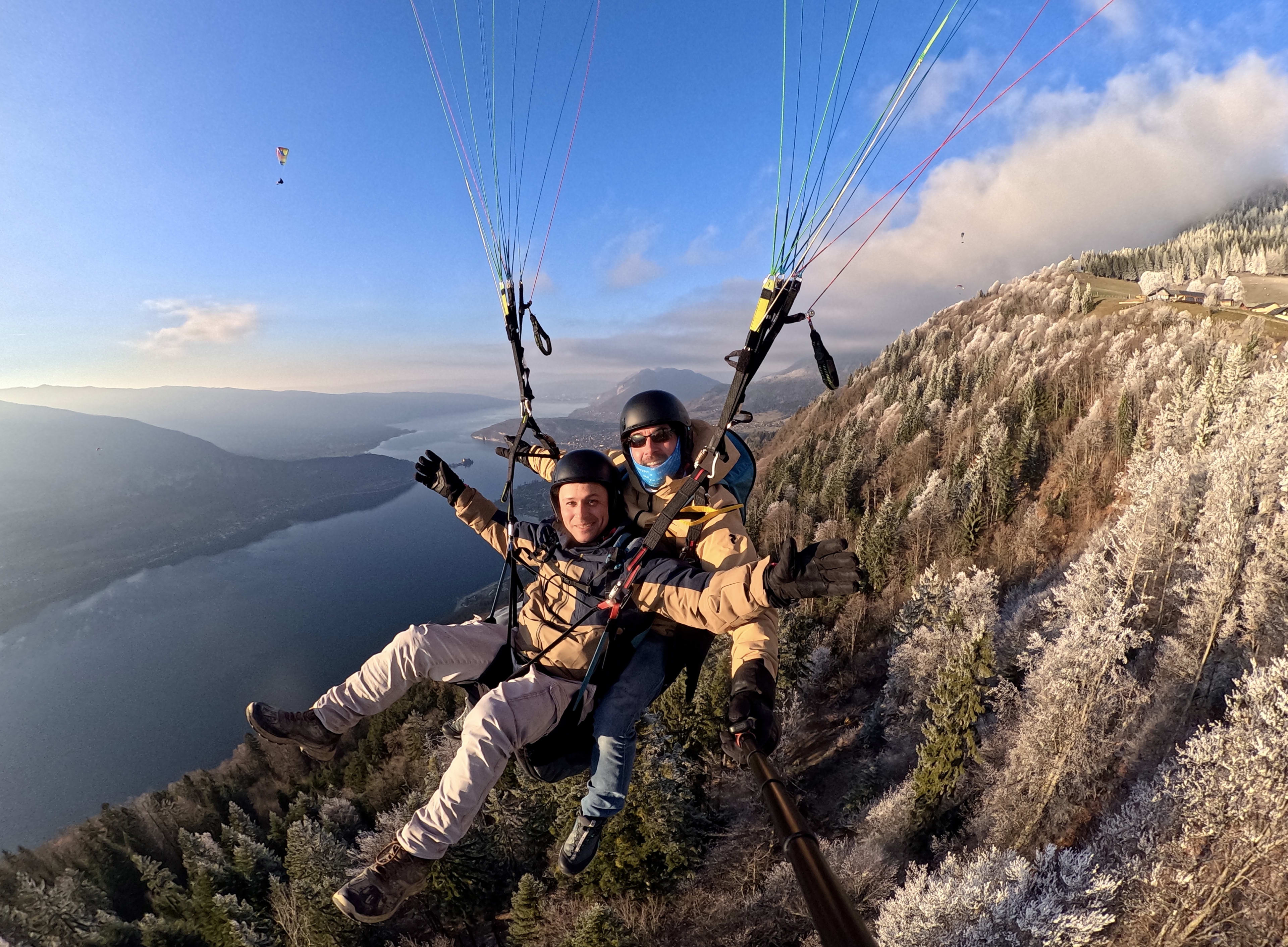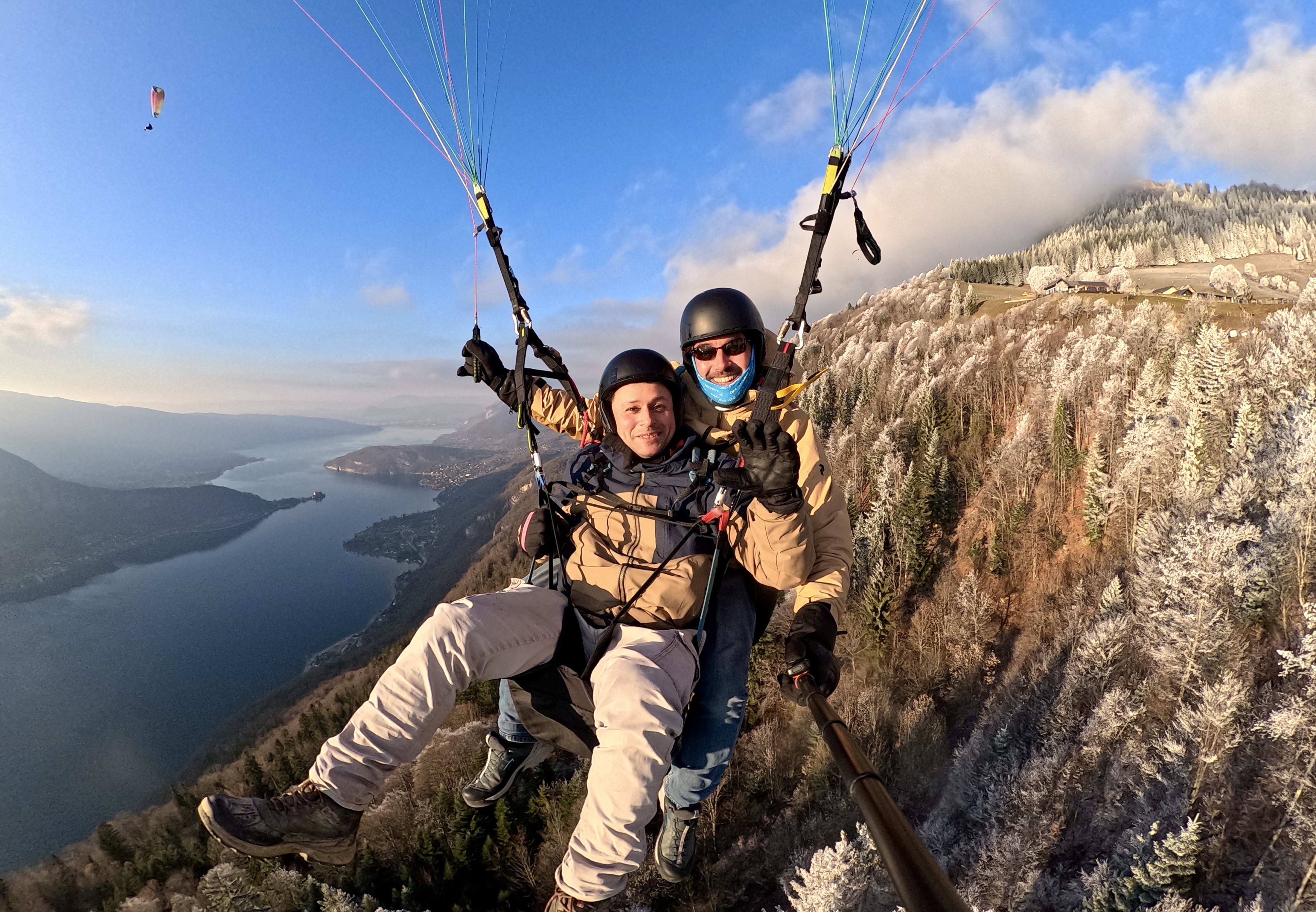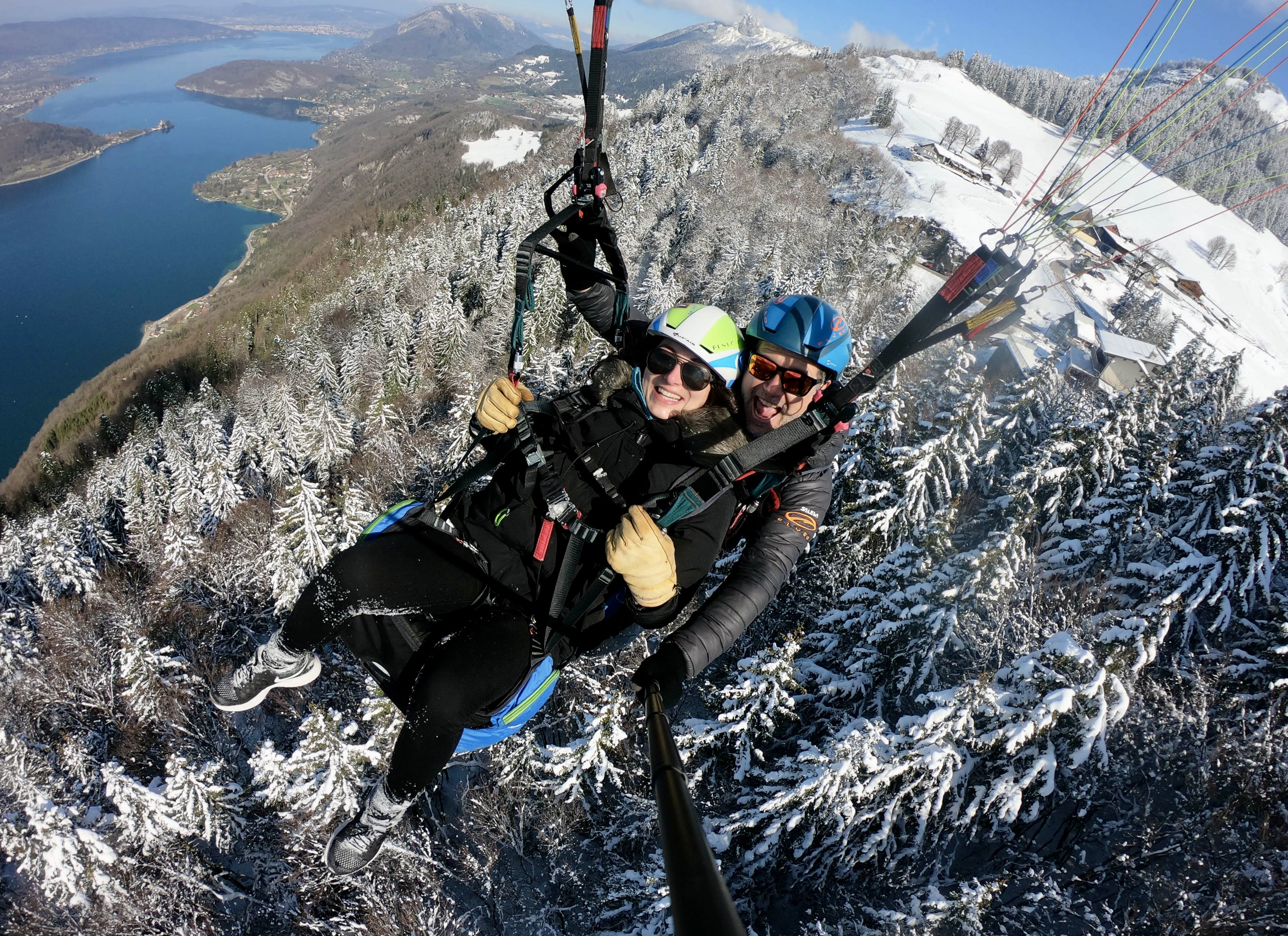 Vuelo invernal en parapente sobre el lago de Annecy