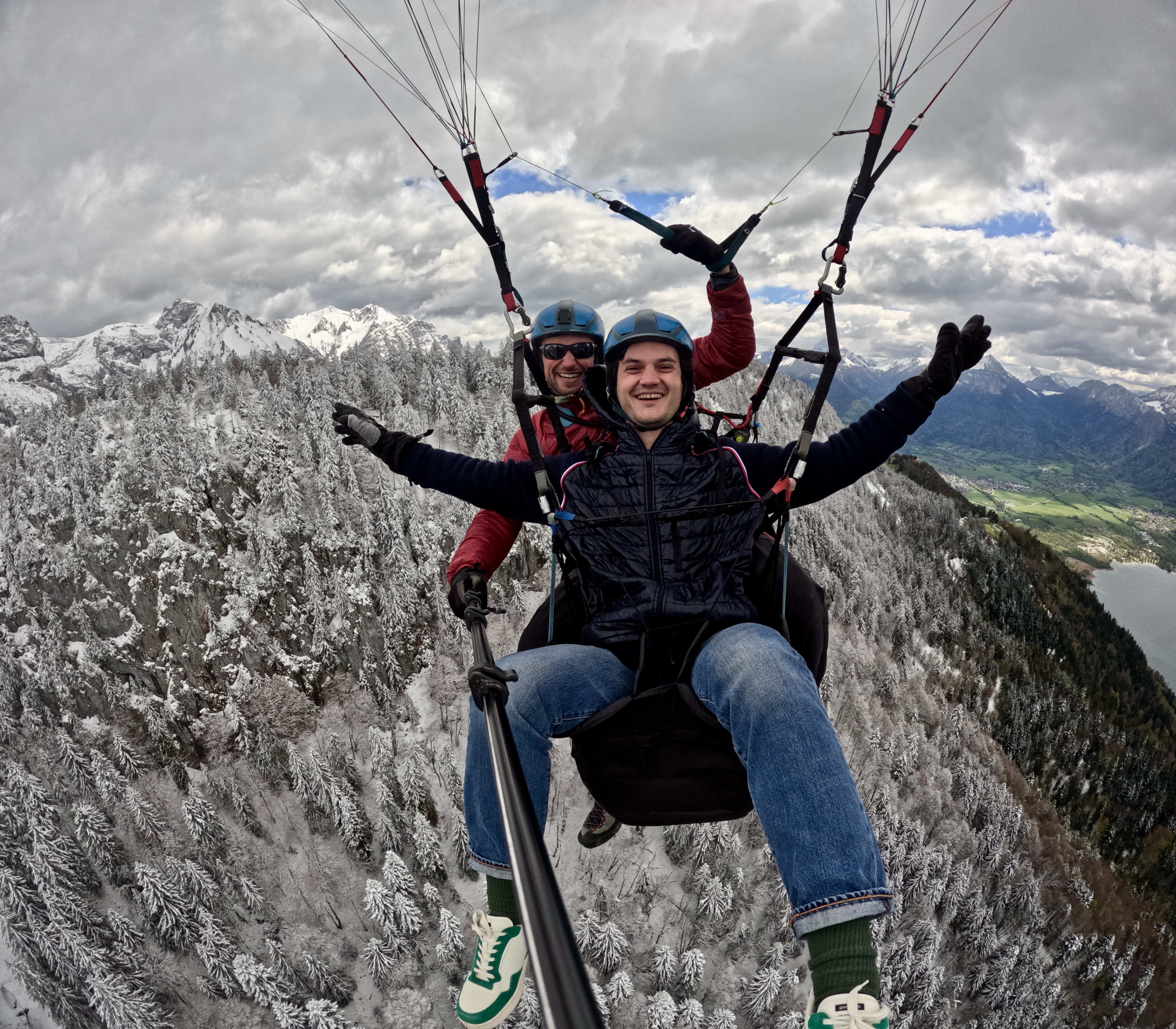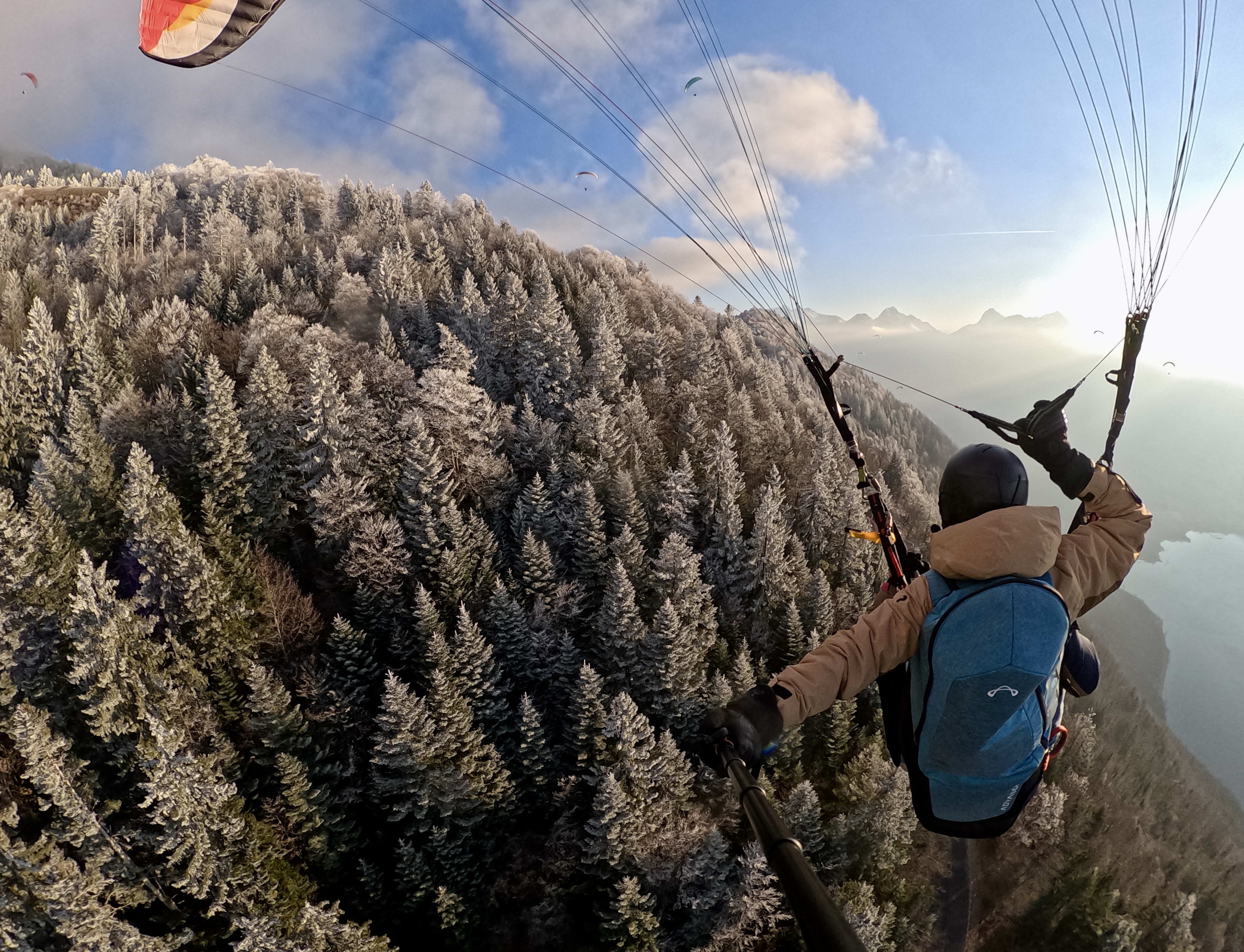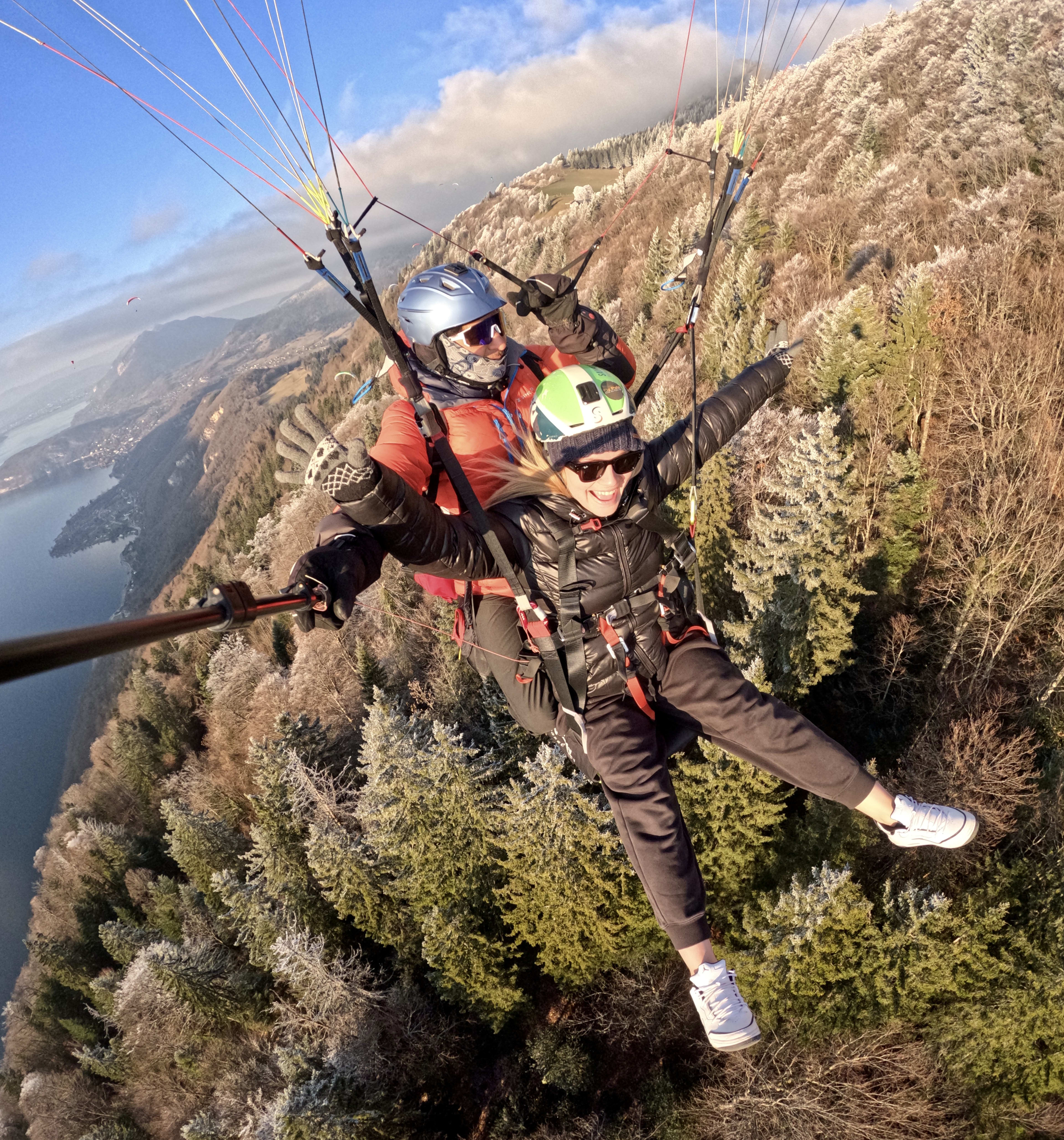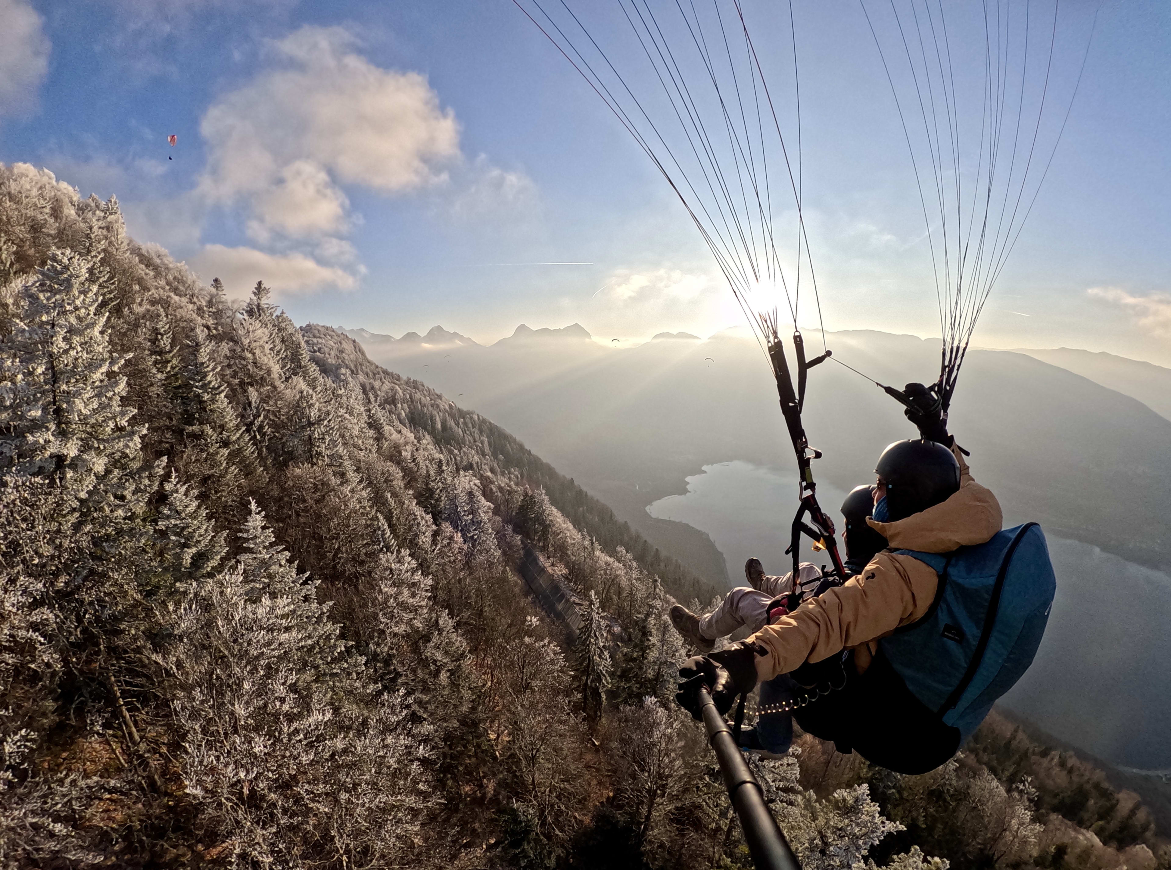 Vuelo invernal en parapente sobre el lago de Annecy