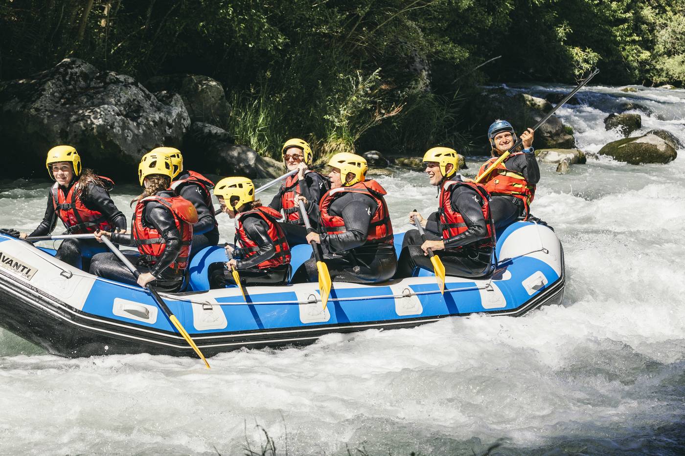 Ya sea solo, en familia o entre amigos, esta experiencia de rafting en el Isère es la ocasión perfecta para compartir una aventura en grupo llena de diversión. En medio de los paisajes vírgenes que se extienden entre Bourg-Saint-Maurice y Centron, el Isère alberga algunos lugares realmente espectaculares: el desfiladero de Centron y los rápidos de Aime, entre ellos. Según el itinerario que elija, podrá optar por un descenso completo del Isère, un tramo más corto por los rápidos del Aime o el desfiladero del Centron.