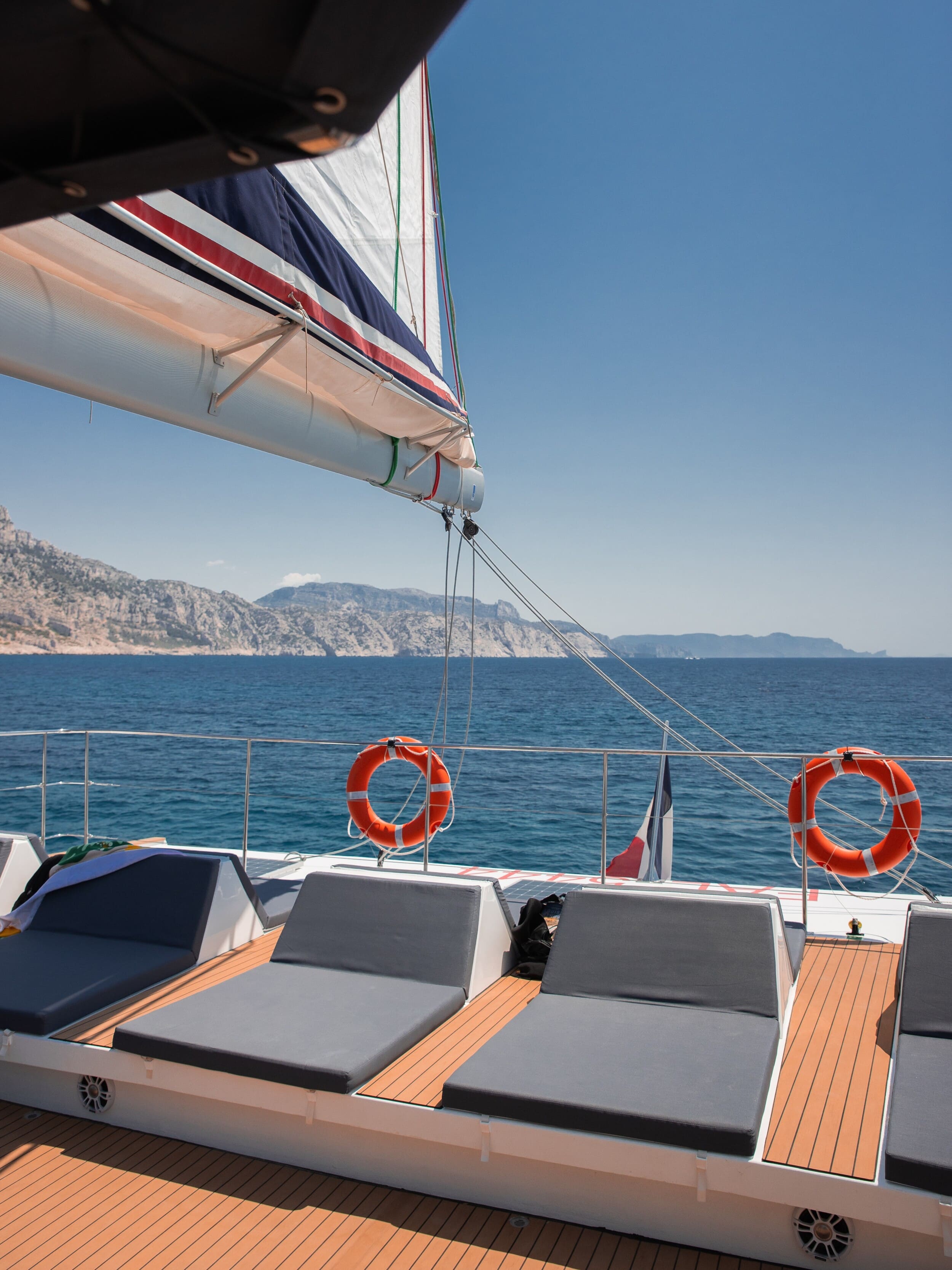 - Embarque: Encuentro en el Vieux Port de Marsella donde la tripulación le dará la bienvenida a bordo del catamarán. Presentación del barco, la tripulación, el programa y las instrucciones de seguridad antes de la salida.