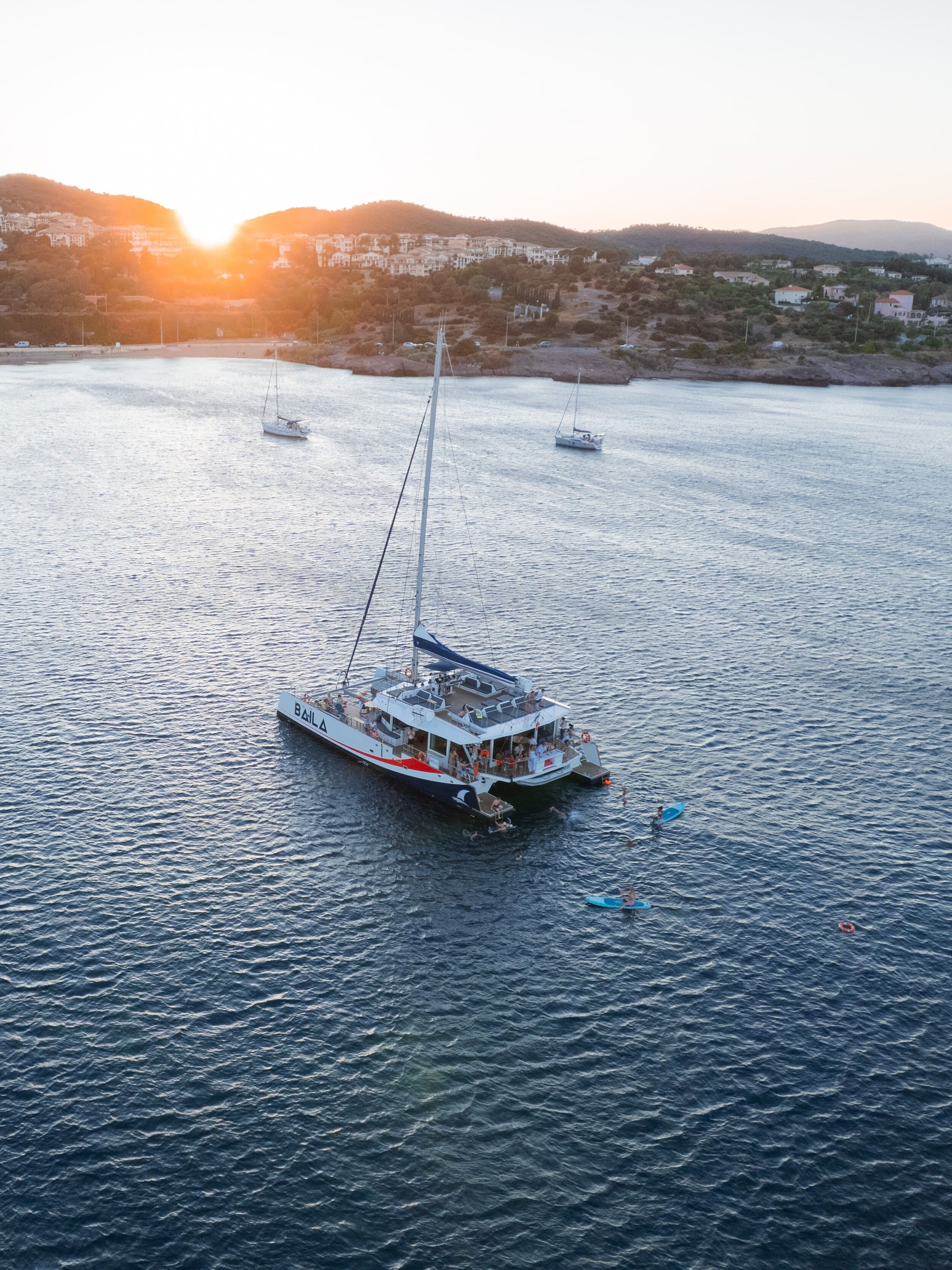 Subirá a bordo del catamarán en el puerto viejo de Saint-Raphaël y se dirigirá a la isla de Or y al cabo Dramont, puerta de entrada a las calas del Esterel. El principal objetivo de esta excursión en catamarán al atardecer desde Saint-Raphaël es ofrecerle la oportunidad de relajarse y disfrutar de los sublimes paisajes del litoral rafaelino. Incluso tendrá la oportunidad de practicar stand-up paddle a los pies de la isla de Or, desde donde podrá contemplar el resplandor de los acantilados del cabo Dramont mientras se pone el sol.