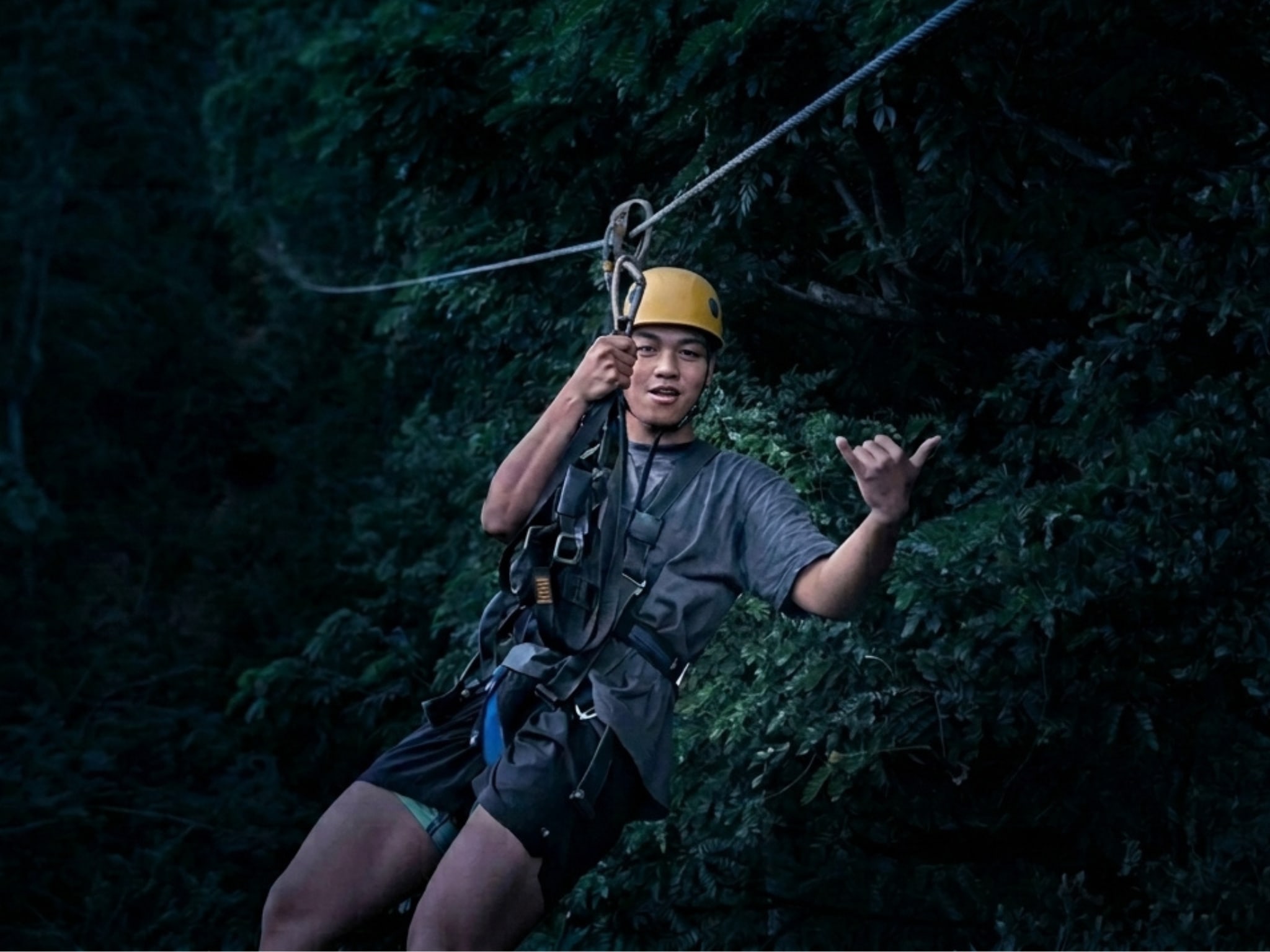 En esta actividad recorrerás tres tirolinas nocturnas sobre la selva de Kapolei.