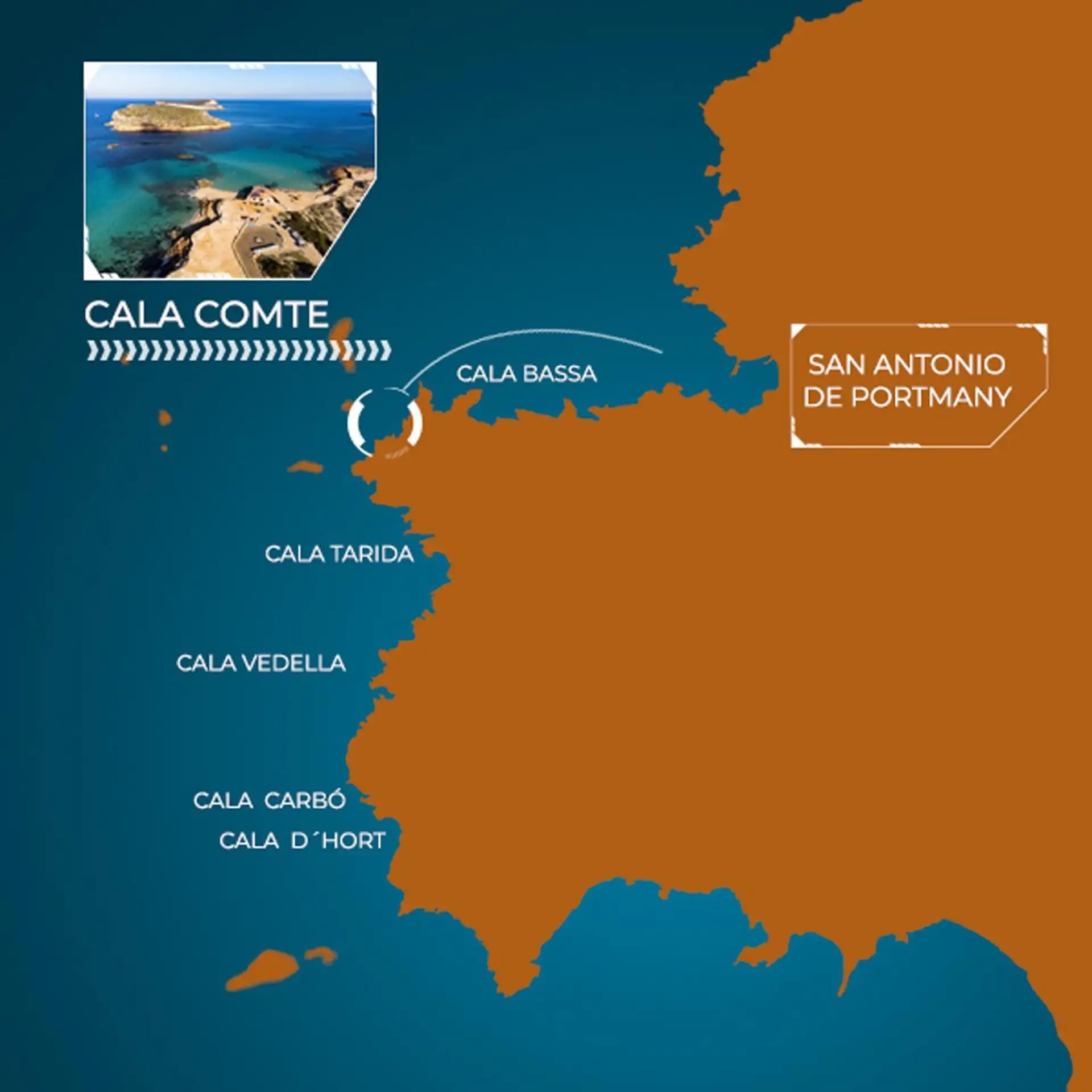 Cala Comte es un lugar mágico que merece la pena visitar, y con una excursión en moto de agua de 45 minutos desde San Antoni de Portmany, podrá verlo desde el océano, ¡y parar a relajarse un rato!