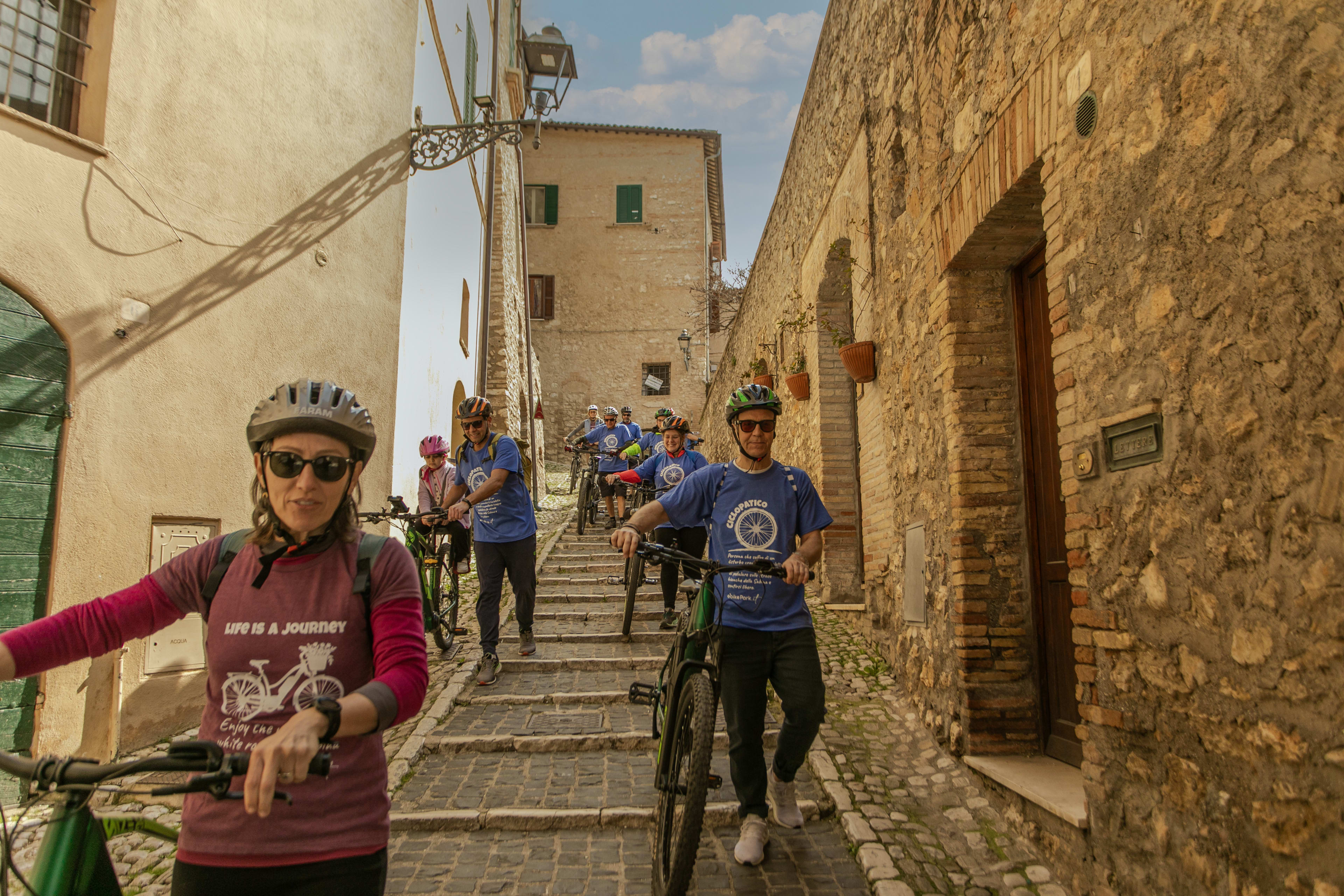 Explore los encantos medievales de las colinas de Sabina en un recorrido en bicicleta eléctrica de 15 km entre el pueblo "en forma de bulbo" de Casperia y la aldea excavada en la roca de Roccantica.