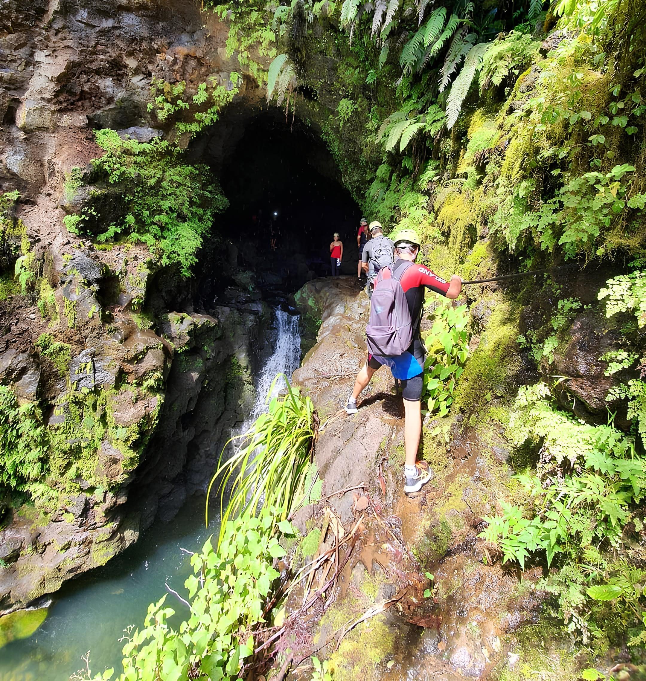 La aventura continúa al salir de los Lavatubos por un magnífico río salpicado de cascadas, ideal para darse un refrescante baño. Este segundo tramo de la ruta, al aire libre, serpentea entre exuberante vegetación y ofrece unas vistas panorámicas que le dejarán sin palabras.