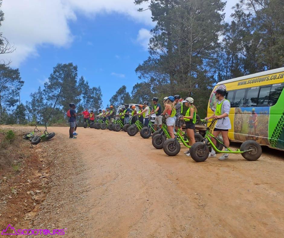 - Départ pour 1 heure d'excursion guidée en trottinette électrique tout-terrain dans la forêt de Knysna, incluant une pause à l'un des 4 cols historiques décrits dans les célèbres romans Fiela se Kind et Kringe in 'n Bos
