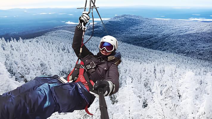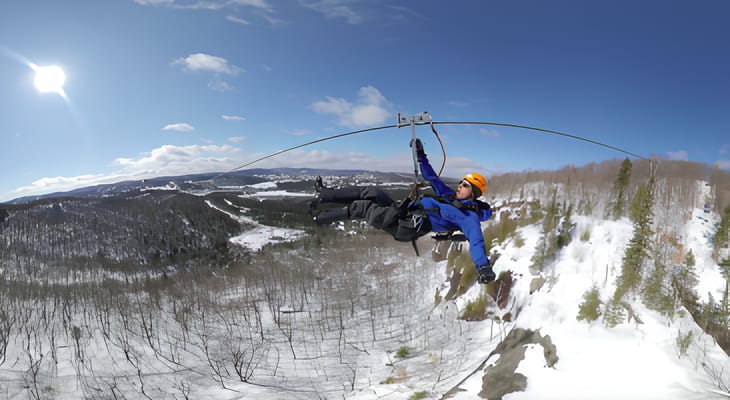 Cet hiver, découvrez la via ferrata du Mont-Catherine, au cœur des Laurentides, et survolez les paysages de Sainte-Agathe-des-Monts depuis 2 méga tyroliennes !