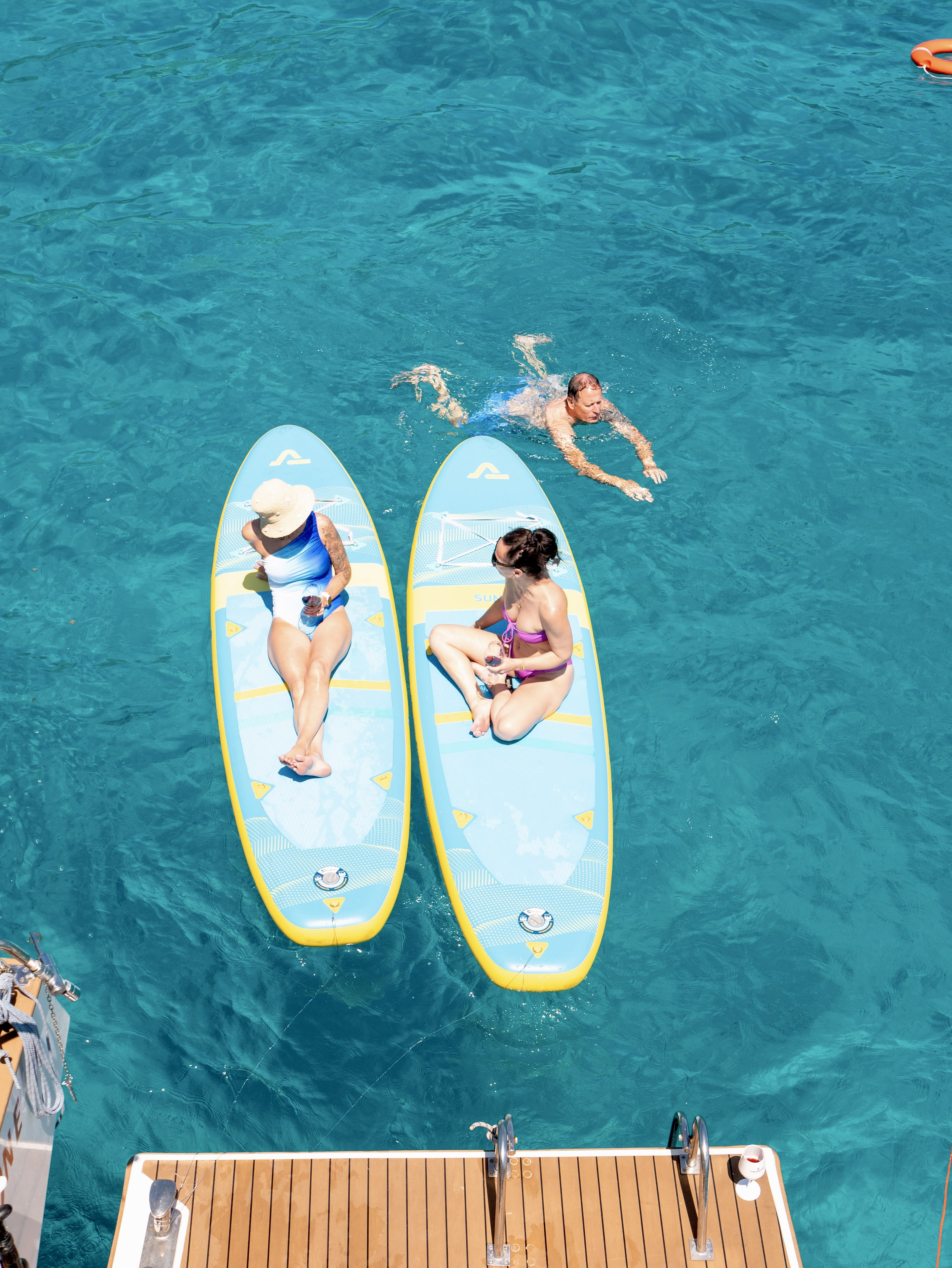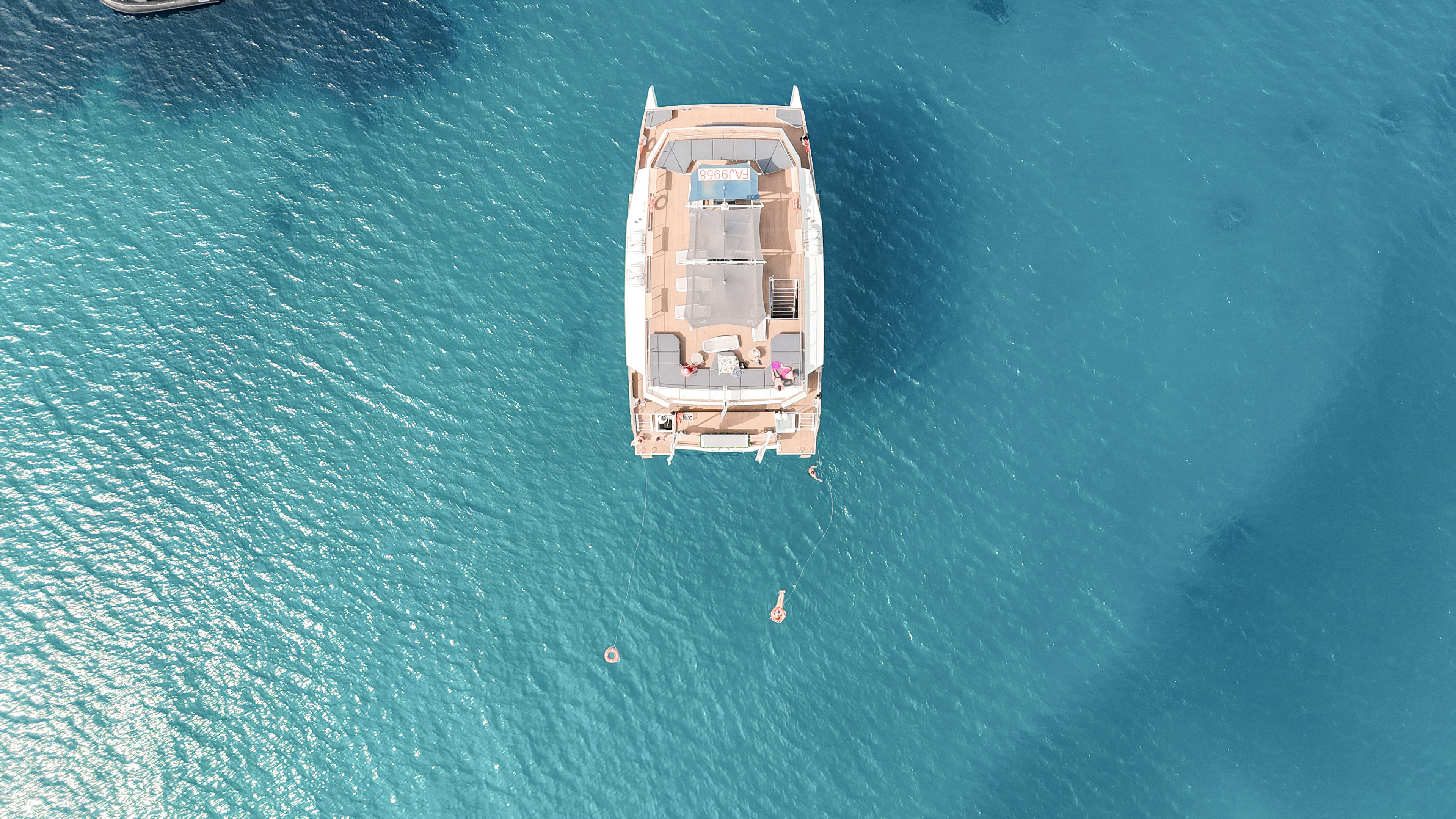 Lors de cette balade en catamaran dans le golfe d’Ajaccio, l’équipage sera à votre écoute afin que vous passiez un moment d’exception. Le bateau, moderne et confortable, est quant à lui parfaitement équipé pour vous offrir la plus belle des expériences de croisière à Ajaccio : des fauteuils en teck et des transats pour vous prélasser au soleil, un grand bar mettant à votre disposition différentes boissons soft (autres boissons à votre charge), une sonorisation de haute qualité pour une ambiance festive, 3 douches de pont pour vous rincer après votre baignade, des WC séparés, etc. Il vous sera sans doute difficile de débarquer après avoir vécu une sortie si confortable en catamaran dans le golfe d’Ajaccio !