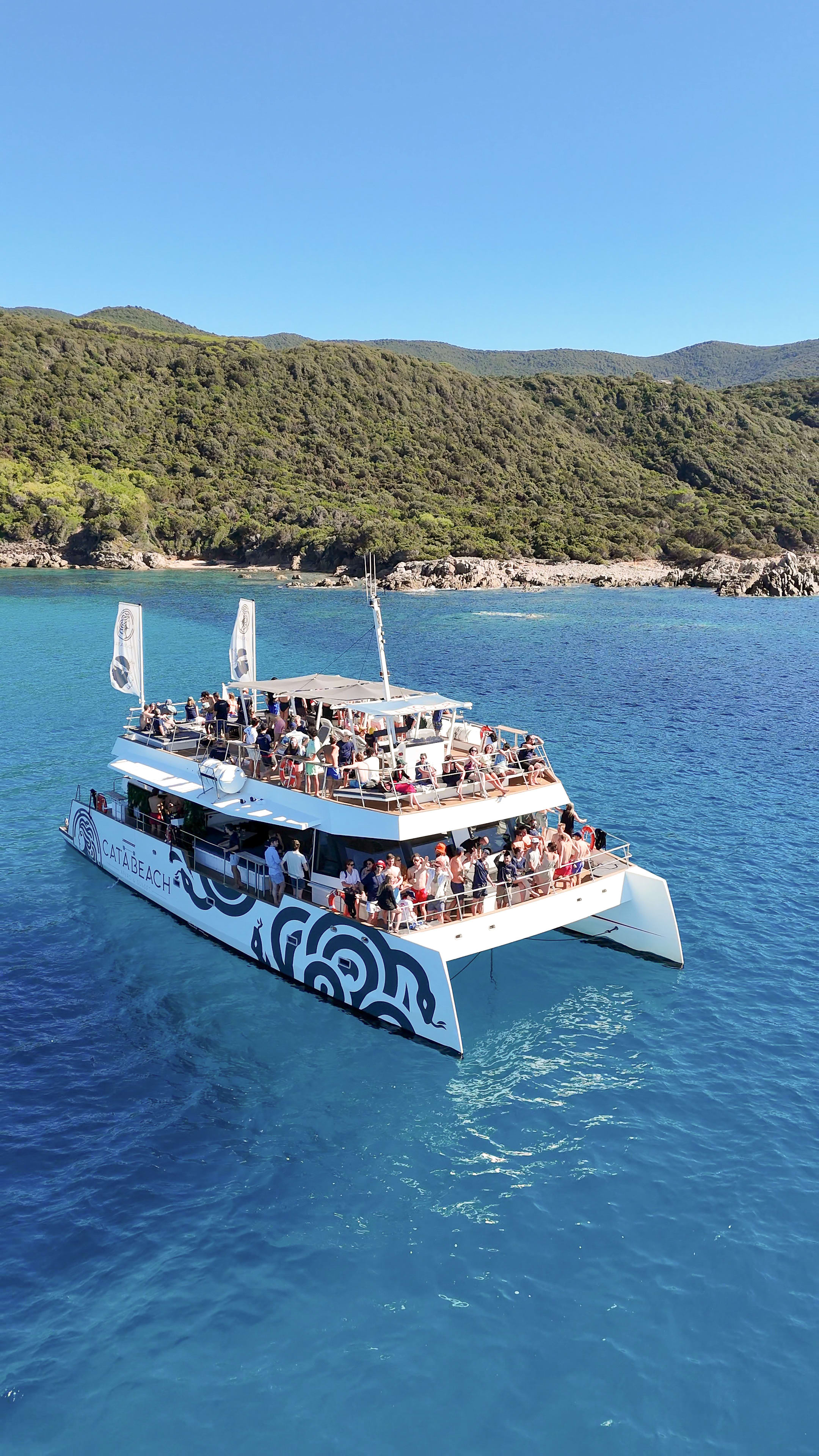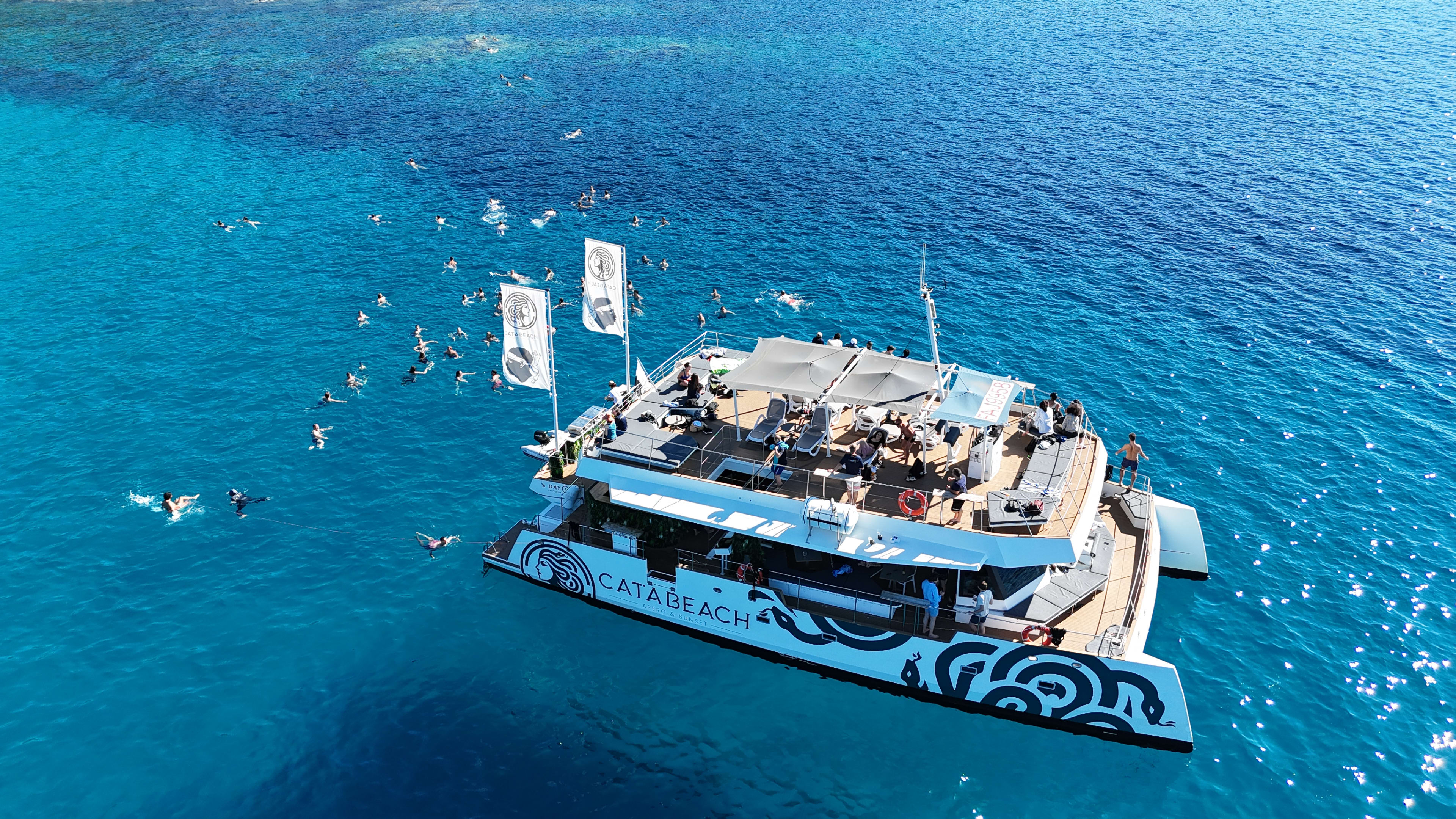 Pour 4 heures (demi-journée) ou 6 heures (journée), l’équipage de Catabeach vous invite à embarquer à bord de leur maxi-catamaran Day One pour vivre une inoubliable croisière dans le golfe d’Ajaccio, au départ du port Tino Rossi. Placée sous le signe de la détente, cette expérience en mer vous permettra de profiter du cadre magnifique du golfe en toute tranquillité, avec au programme un mouillage aux îles Sanguinaires ou à la pointe Cacao. Ce sera l’occasion de vous mettre à l’eau pour une agréable baignade dans les eaux turquoise du littoral corse, mais aussi déguster un bon déjeuner à bord face à d’incroyables paysages !