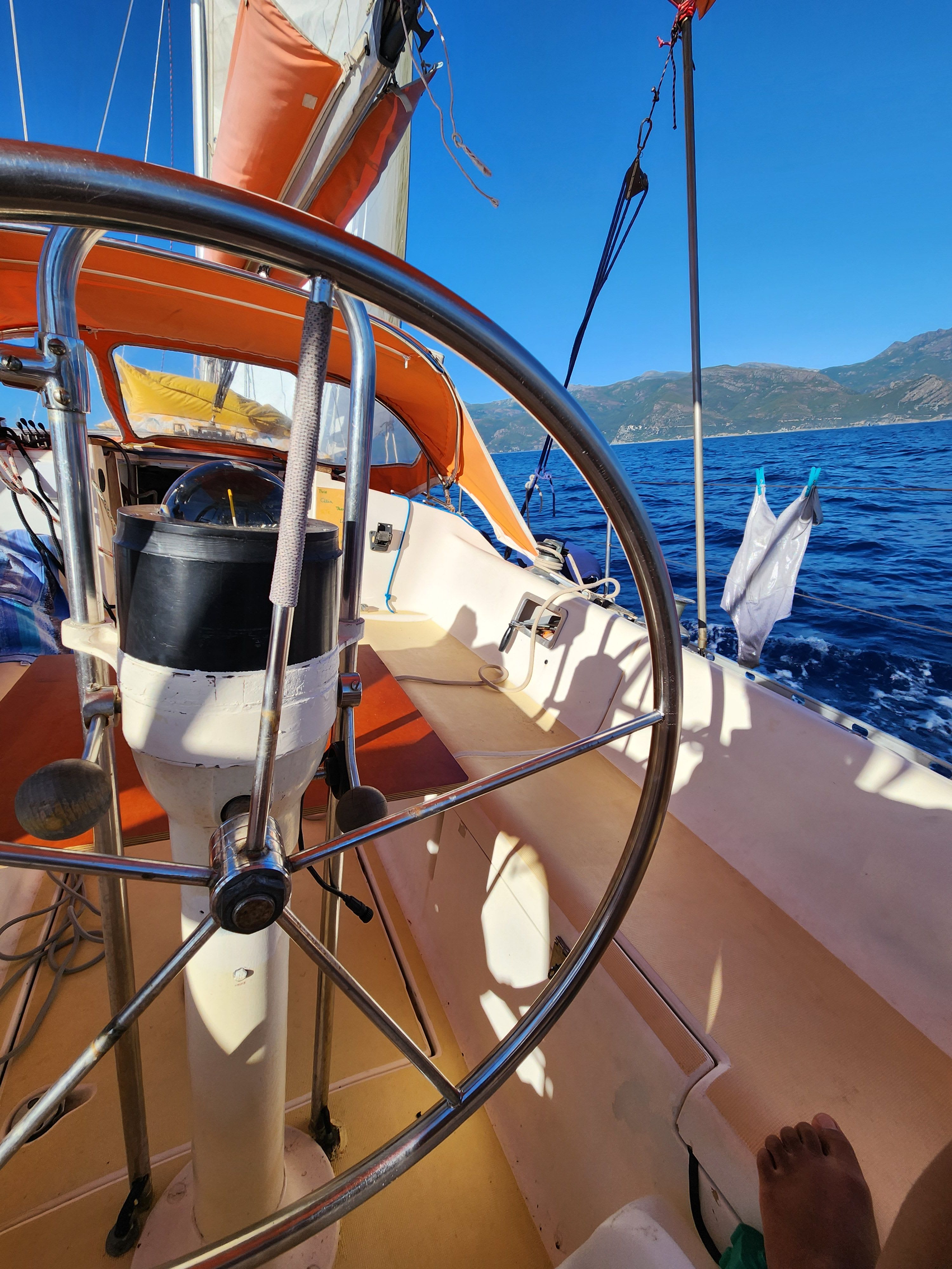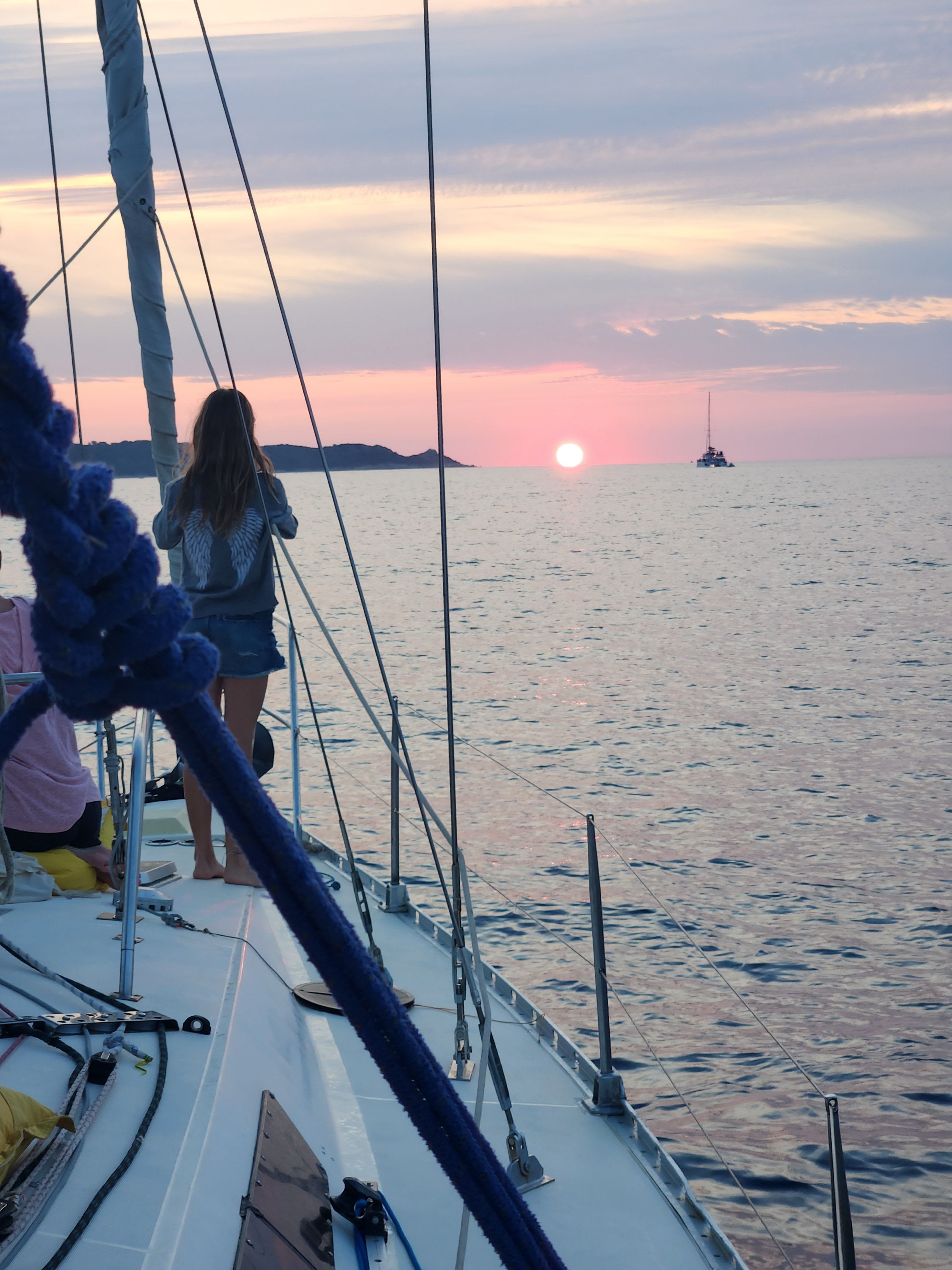 Votre journée s'articule autour de la navigation à la voile et de la détente dans des eaux cristallines. Après un accueil chaleureux au port, vous mettrez le cap vers des sites emblématiques tels que la Punta di Saeta ou la plage du Lotu. Le capitaine, skipper professionnel diplômé d'État, partage volontiers sa passion : vous pourrez, si vous le souhaitez, participer aux manœuvres et vous initier aux rudiments de la voile. Les escales sont choisies avec soin pour vous permettre de profiter des plus beaux mouillages du Désert des Agriates et du Cap Corse, des lieux souvent uniquement accessibles par la mer ou par de longs sentiers de randonnée.