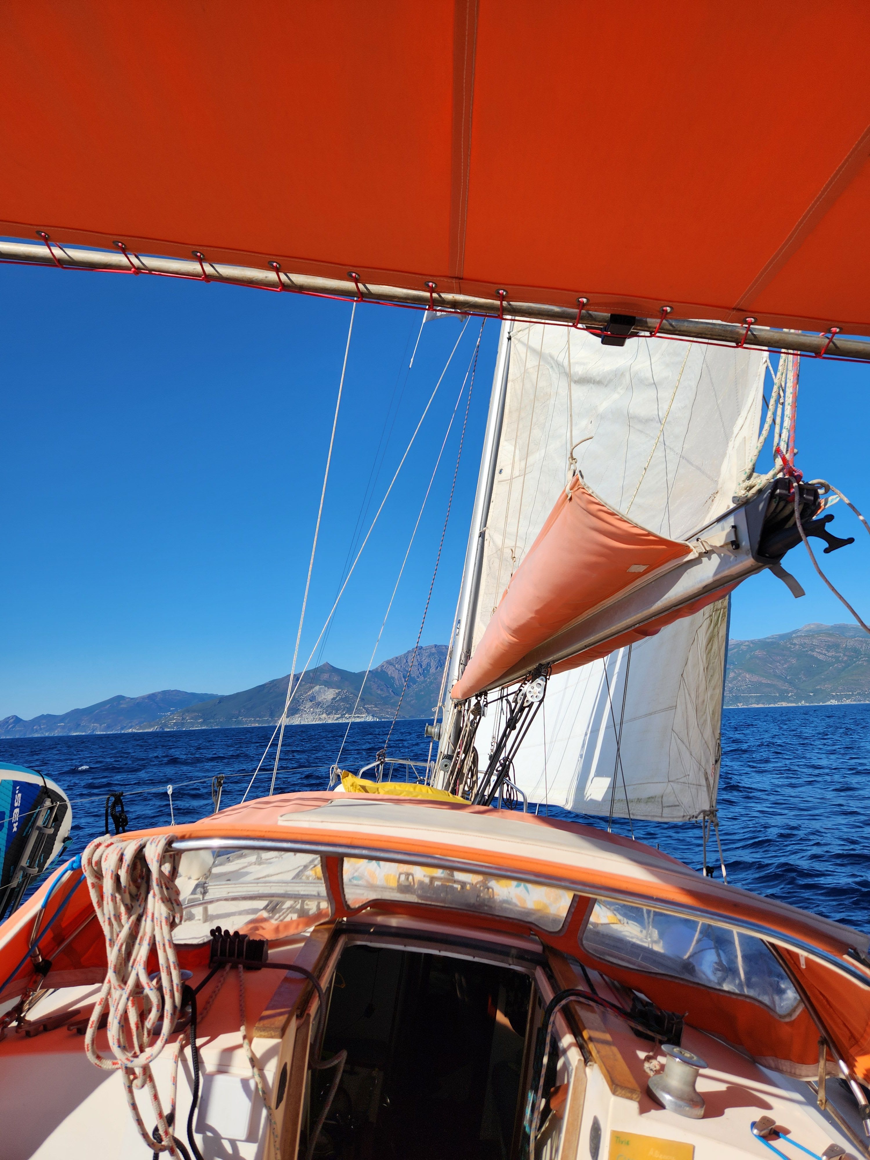 L'atout majeur de cette sortie réside dans son approche locale et généreuse. À l'heure du déjeuner, un repas "fait bateau" vous est servi à l'ombre du taud. Vous dégusterez des produits corses authentiques : bruschettas à la tapenade ou au confit d'oignon maison, suivies de pâtes au pesto frais et de fruits de saison. Entre deux navigations, le matériel de loisir est à votre disposition pour explorer les criques : stand-up paddle, masques de snorkeling des marques Cressi et Mares, ou simplement quelques brasses autour de la coque protectrice du voilier.