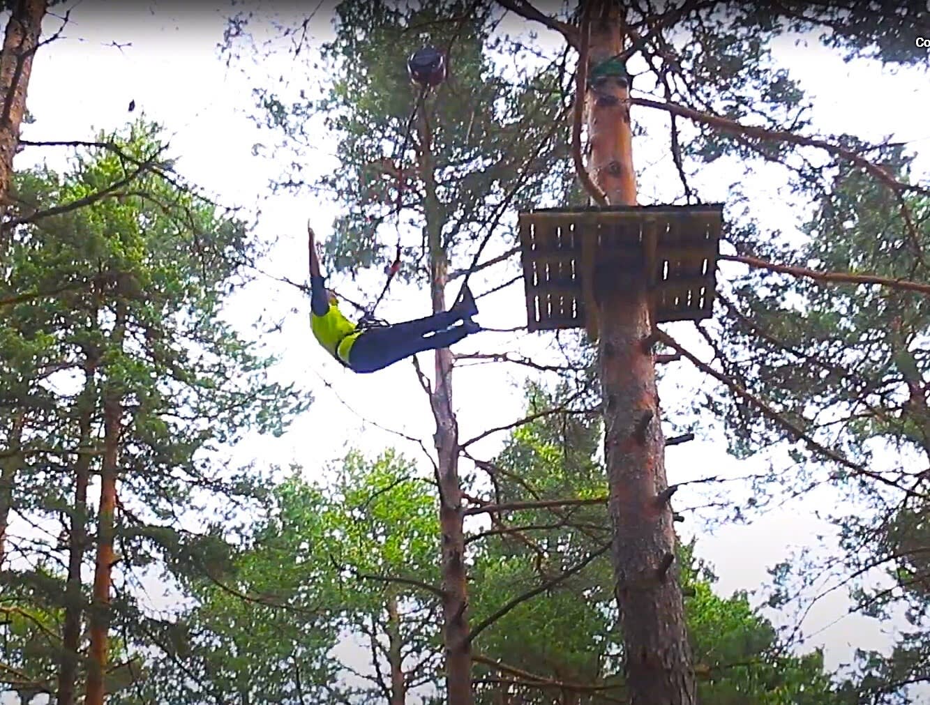 - Deuxième saut ou tour sur la super tyrolienne