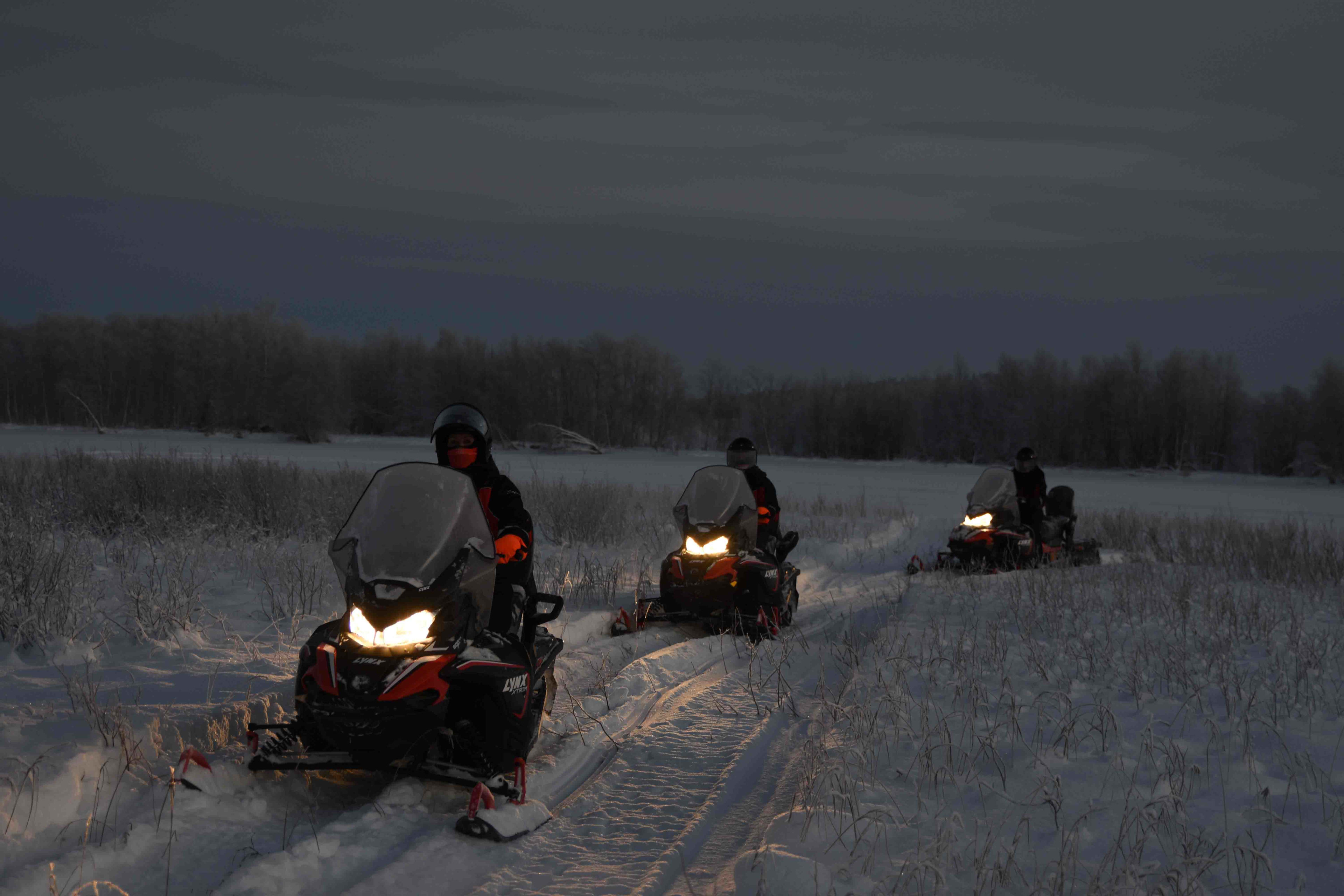Le jour de votre excursion en motoneige au départ d'Ivalo, votre instructeur propose un service de transport depuis différents endroits autour d'Ivalo (veuillez consulter les conditions spéciales). Vous pouvez également arriver au siège de Northern Lights Riders par vos propres moyens. Une fois sur place, votre instructeur vous distribuera les combinaisons thermiques, les chaussures, les gants et les cagoules, afin que vous puissiez vous équiper. Lorsque vous serez prêt, votre instructeur vous donnera un briefing complet sur la sécurité et vous apprendra exactement comment conduire les motoneiges écologiques que vous utiliserez au cours de l'expérience.