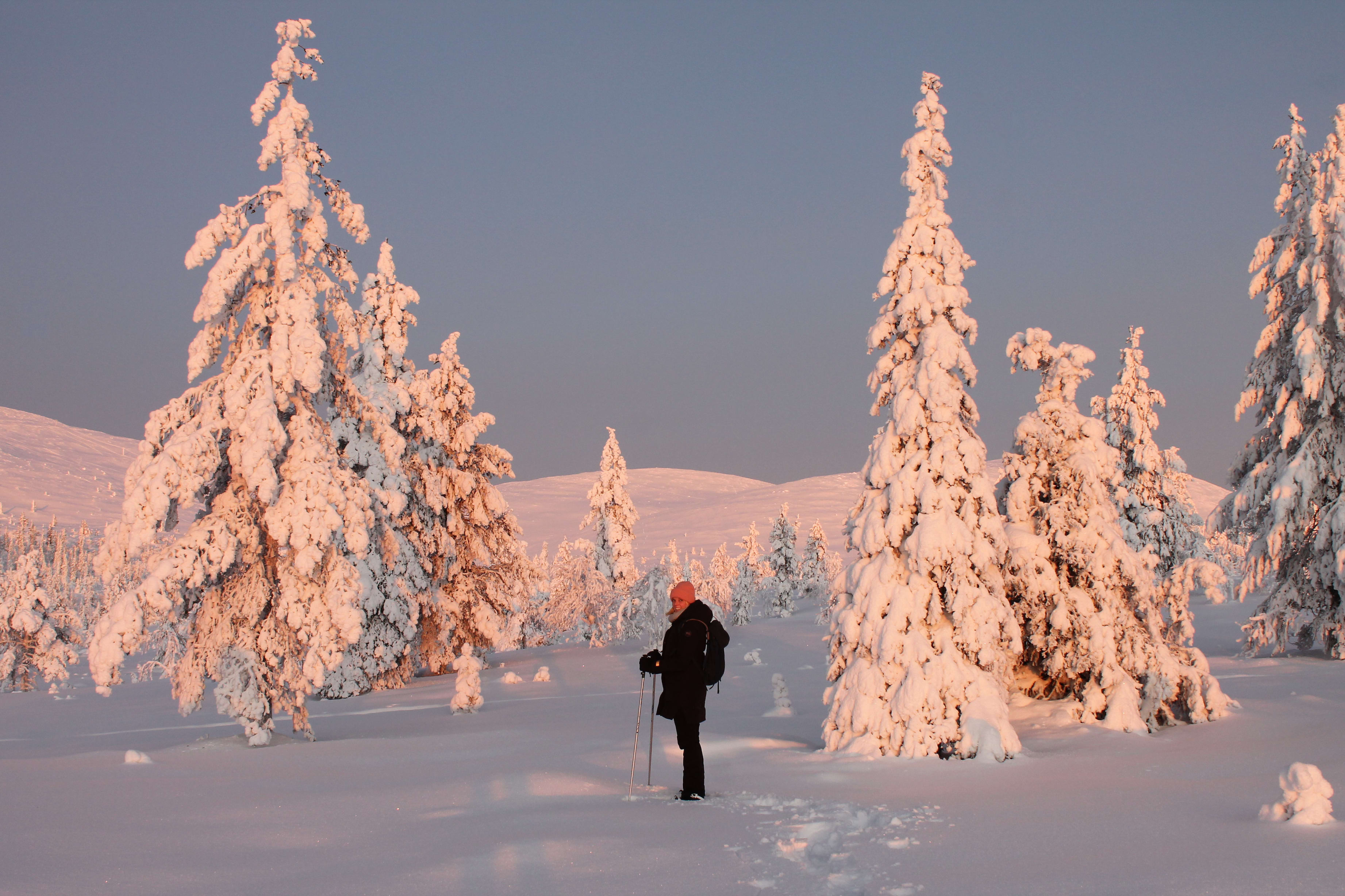 Au cours de cette excursion de 5h30, vous partirez de Levi pour une randonnée guidée en raquettes à travers le parc national de Pallas-Yllästunturi.