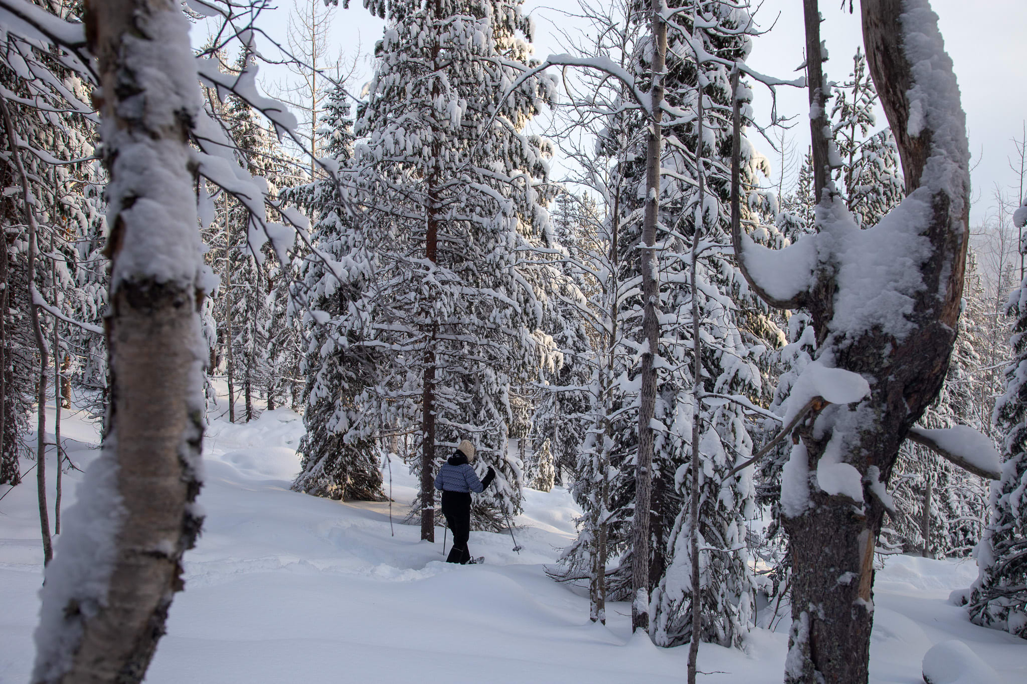 Profitez d'une excursion en raquettes à Levi pour découvrir les magnifiques forêts de Laponie et le lac d'Immel gelé !