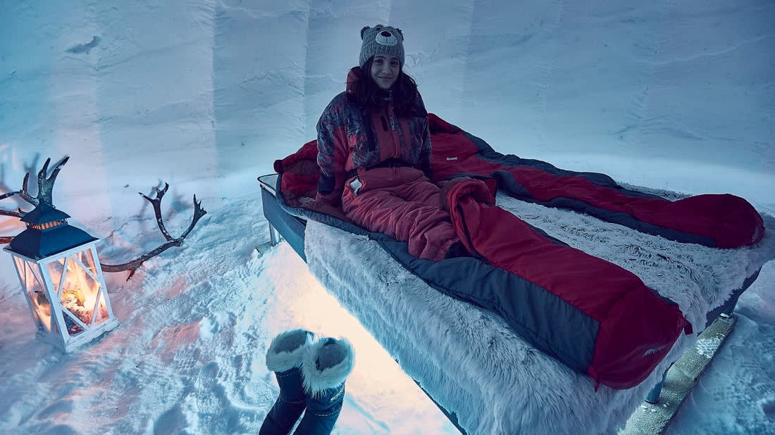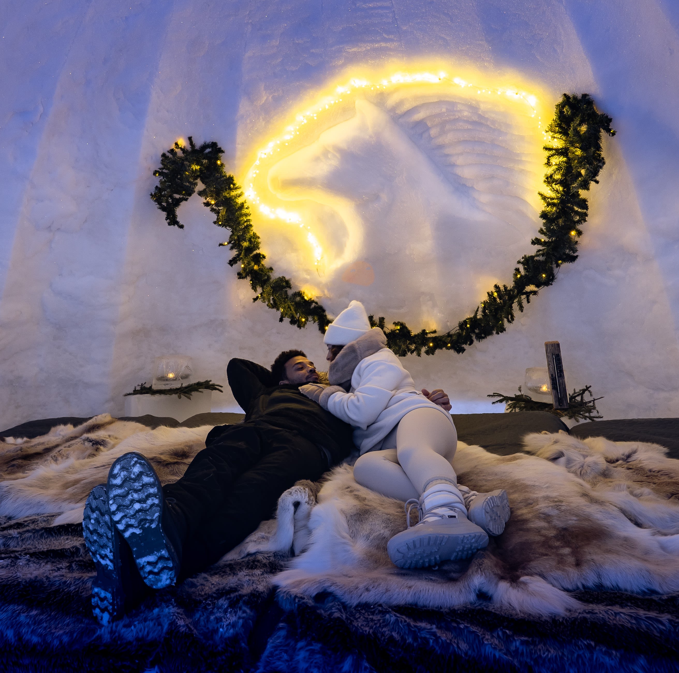 - Installez-vous confortablement dans l'igloo, promenez-vous dans la neige ou restez au camp de base.