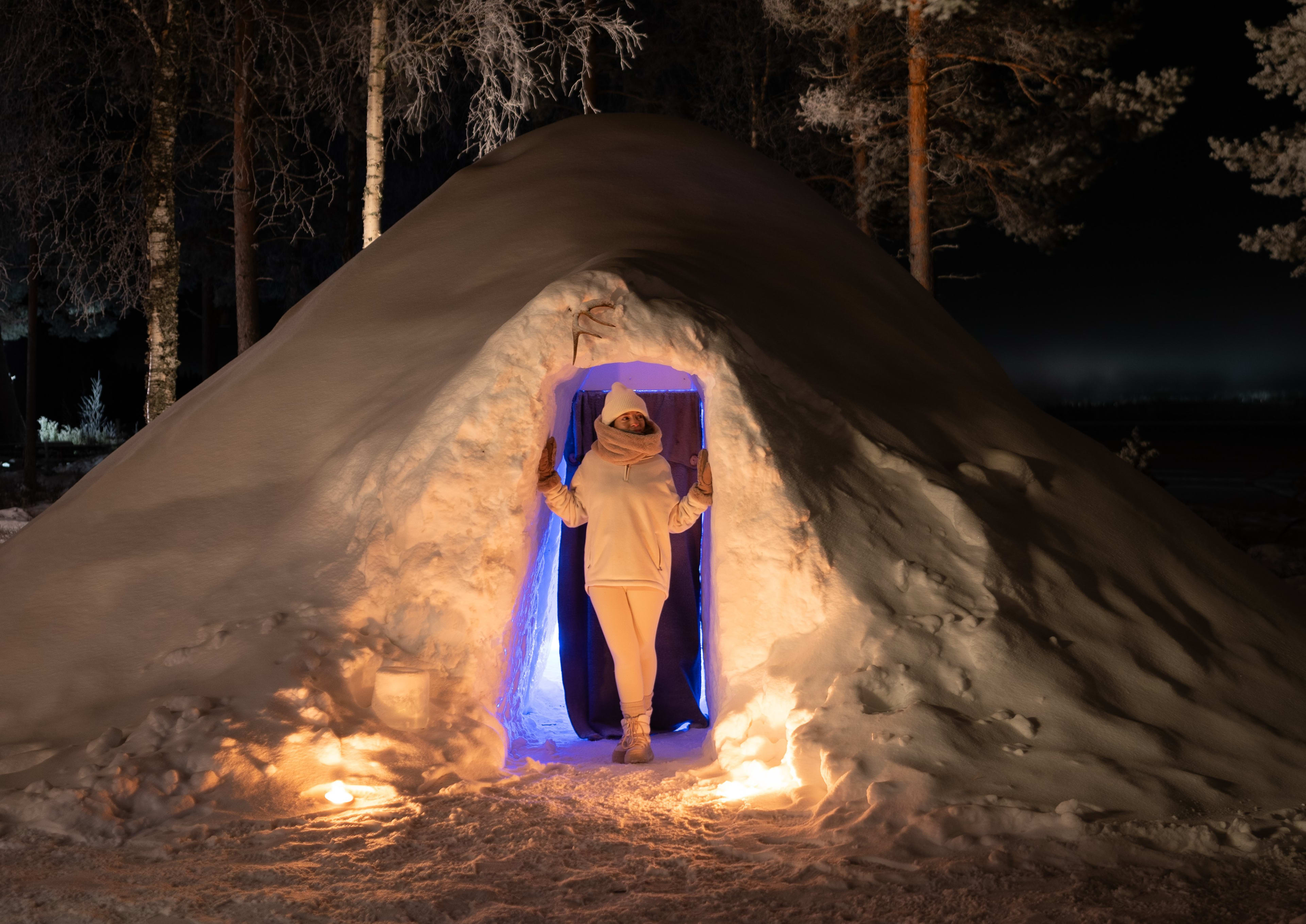 Vivez une nuit inoubliable dans la nature sauvage de la Laponie finlandaise et profitez d'un sommeil en plein air dans l'Arctique lors d'une aventure dans un igloo de neige à Pyhäjärvi !