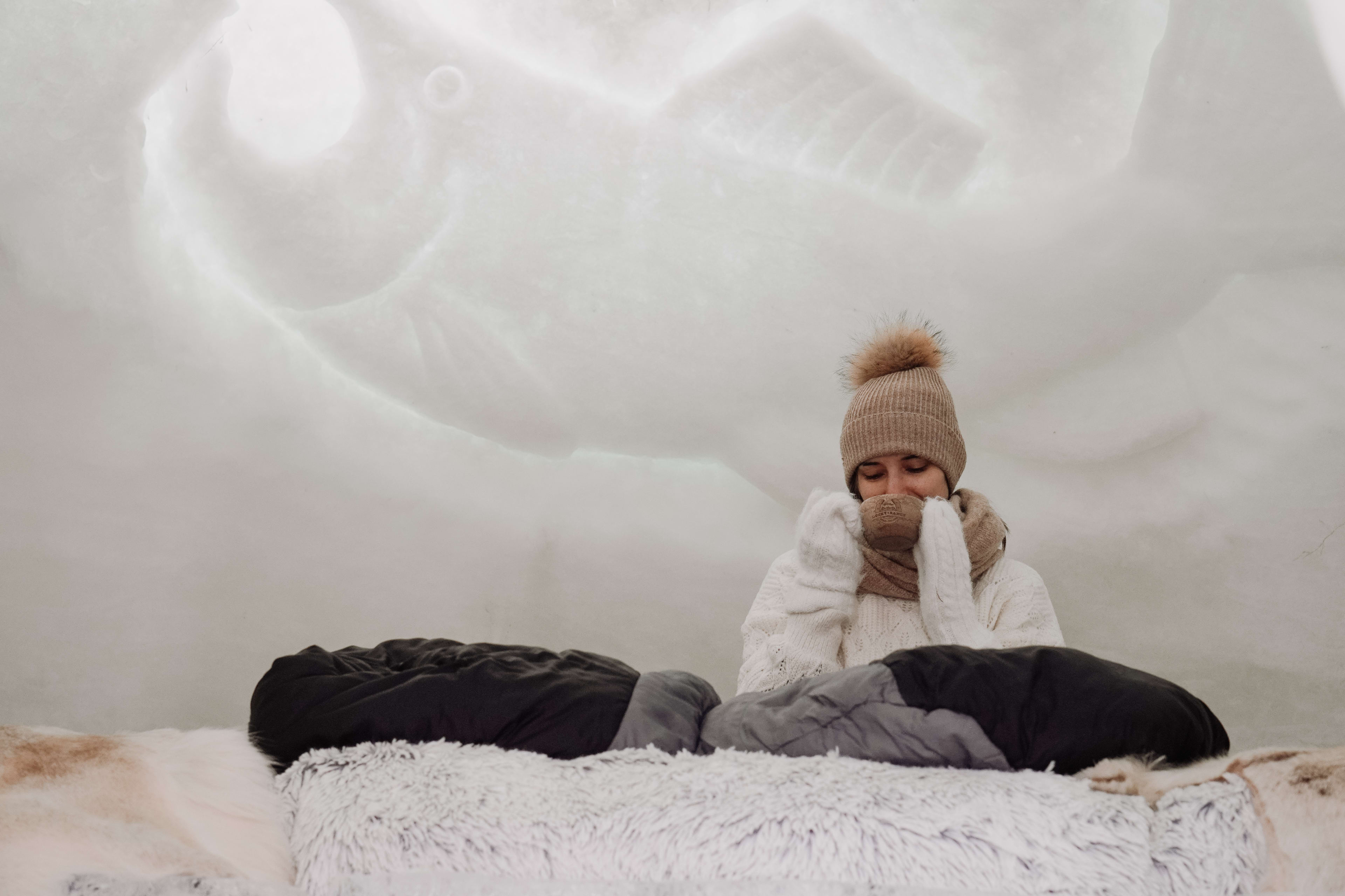 La température à l'intérieur des igloos est toujours inférieure à 0°C. Il y a un risque d'engelures et tous les hôtes doivent s'assurer qu'ils restent dans leur sac de couchage d'hiver pendant toute la nuit.
