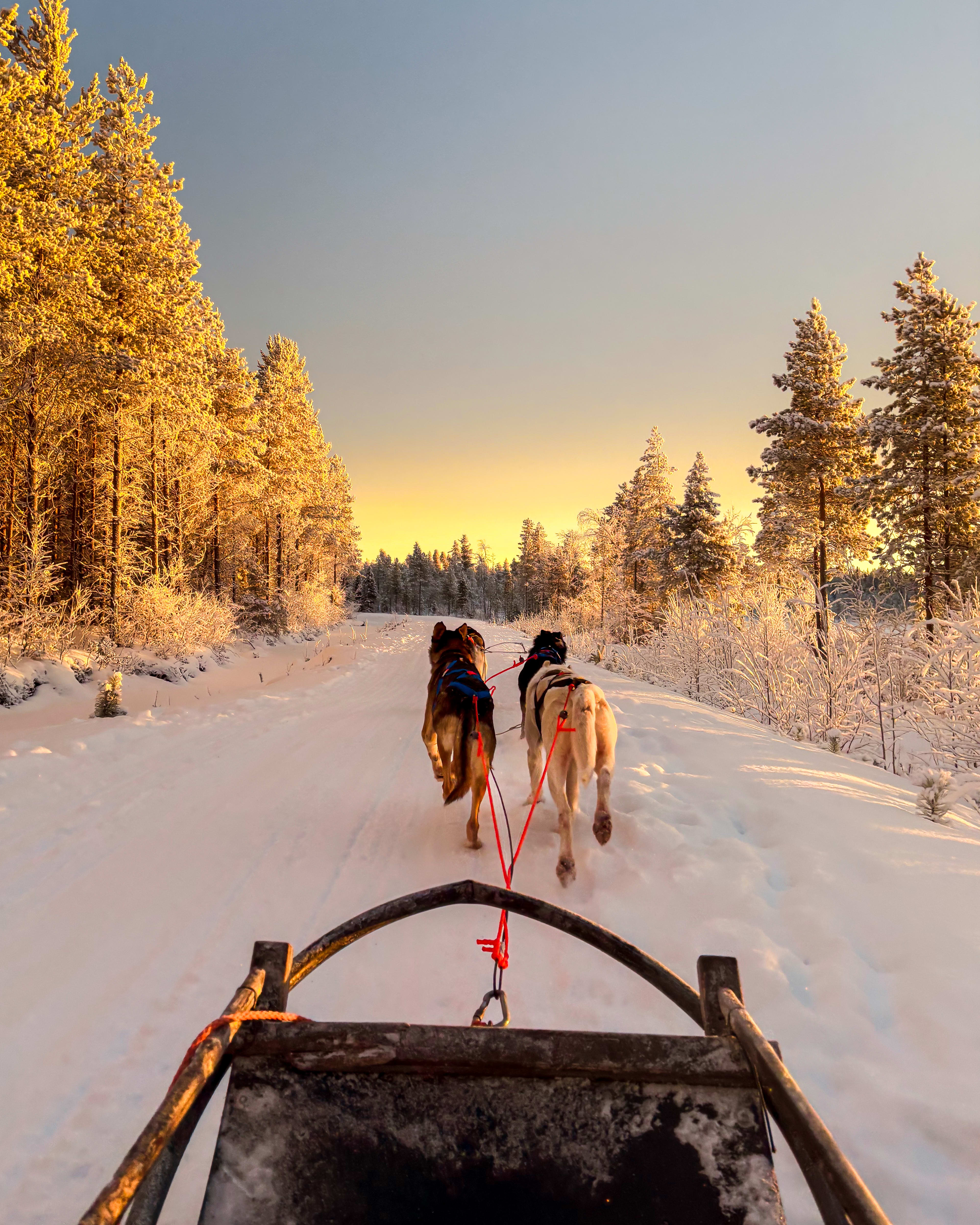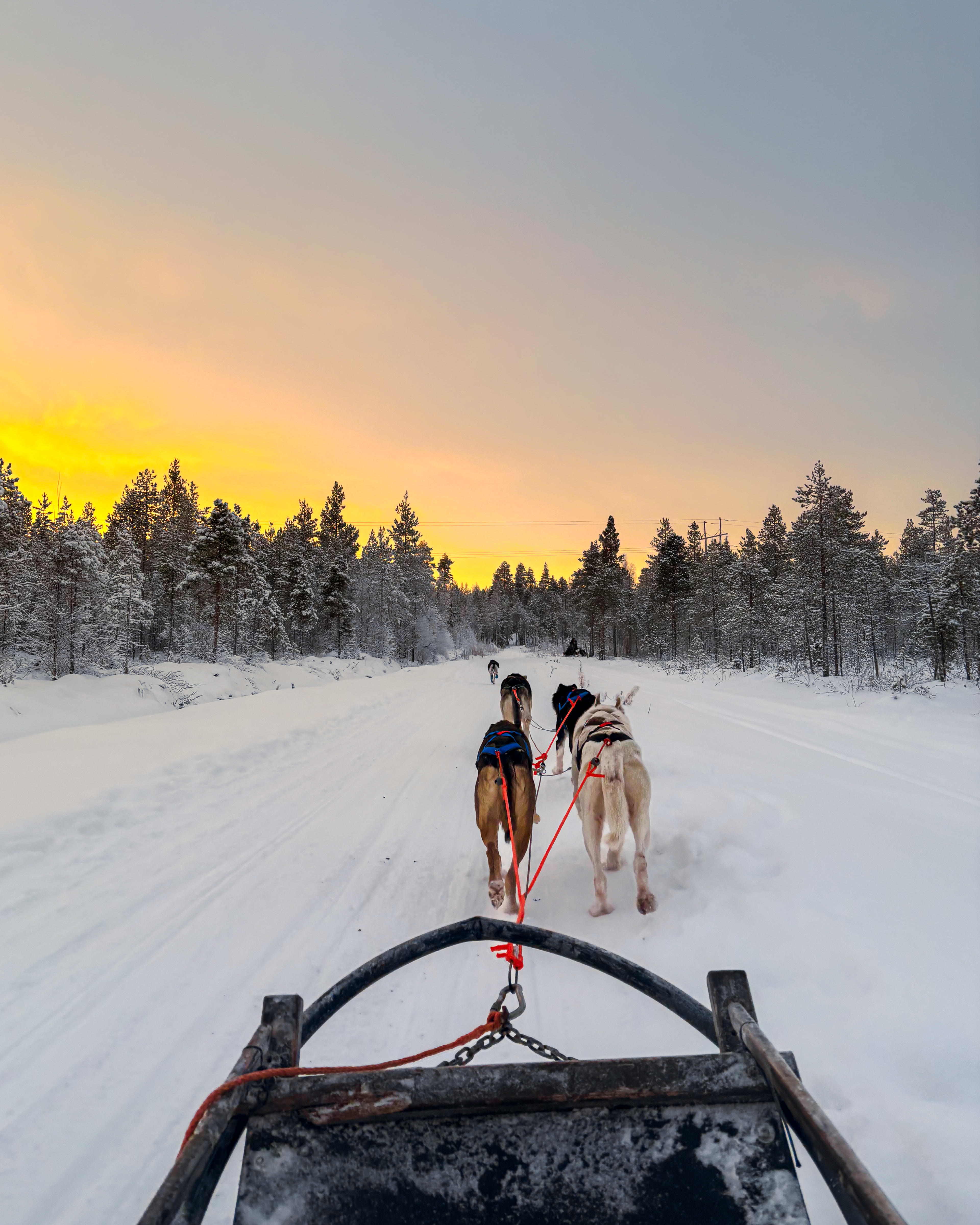 Cette aventure de 3 heures en chiens de traîneau à Rovaniemi commencera lorsque vous entrerez dans l'élevage de huskys et passerez un moment à faire connaissance avec eux, à les caresser et à prendre autant de photos que vous le souhaitez. Une fois que vous êtes prêt, votre musher expert (conducteur de traîneau) choisira les meilleurs chiens pour la journée et préparera le traîneau pour que vous puissiez y monter. Une fois que vous, votre instructeur et les huskies êtes prêts, vous partez ! Vous roulerez à toute vitesse dans les paysages de la Laponie finlandaise, tout en découvrant la vie dans l'Arctique ainsi que la faune et la flore que l'on peut rencontrer dans la région. Après cette balade en traîneau à chiens incroyablement amusante autour de Rovaniemi, vous aurez le temps de vous asseoir, de faire le point avec votre instructeur et de vous réchauffer avec une délicieuse boisson chaude avant de retourner au point de rendez-vous initial pour la fin de l'expérience.