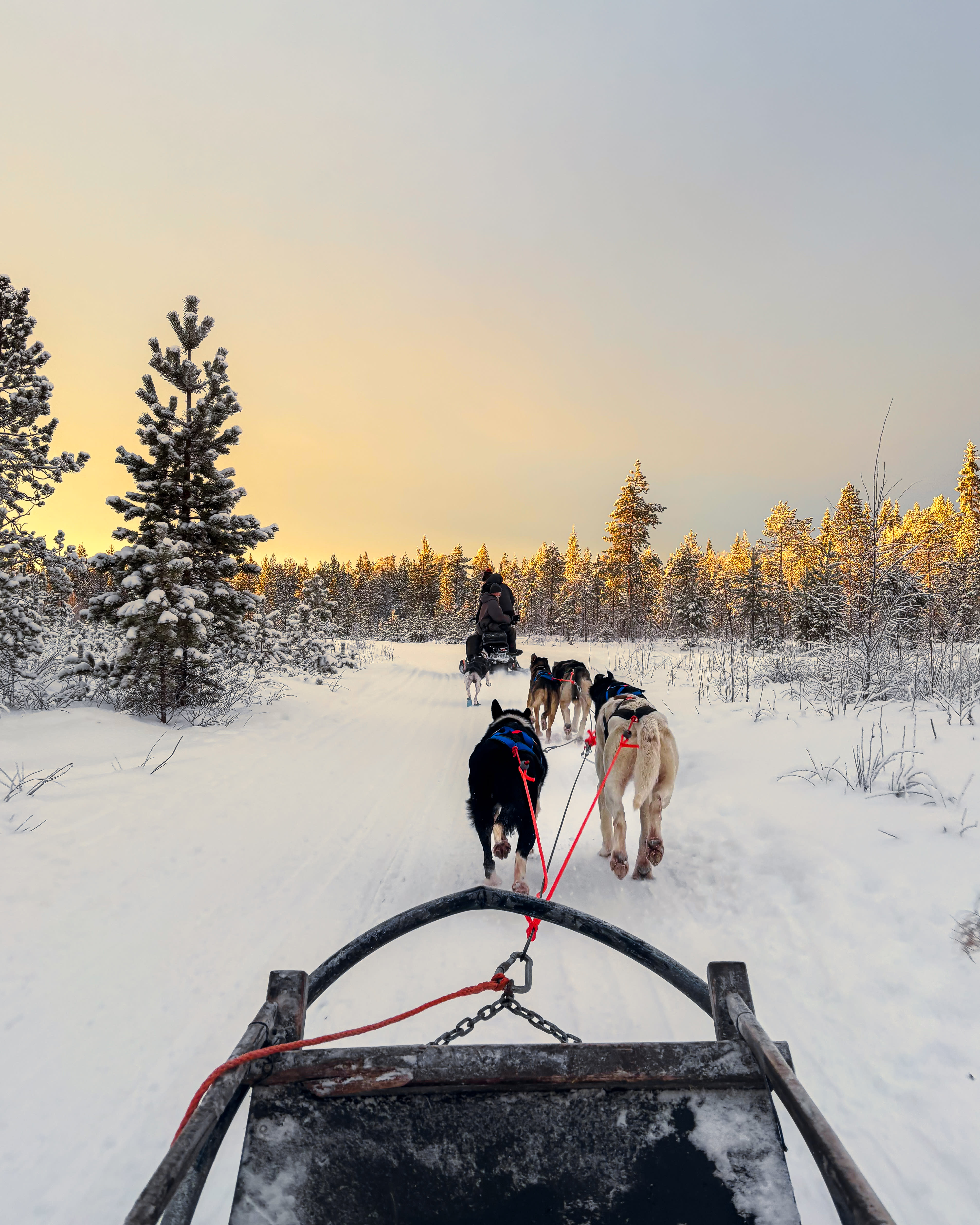 N'oubliez pas que cette promenade guidée en traîneau à huskies à Rovaniemi se déroulera dans la nature finlandaise enneigée et gelée. Pensez donc à apporter des vêtements d'hiver chauds, notamment des sous-couches thermiques ou en laine, des vêtements d'extérieur coupe-vent et imperméables, un chapeau, une écharpe, des gants, des bottes de neige ou des chaussures d'hiver pratiques, ainsi que tout ce dont vous pourriez avoir besoin (médicaments, en-cas, etc.) pour rester en sécurité et profiter pleinement de cette expérience étonnante !