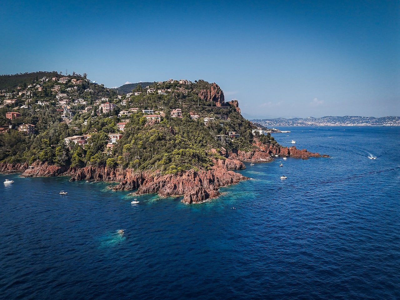 Vous découvrirez un panorama naturel extraordinaire où les célèbres roches rouges contrastent avec une palette de bleus fascinante. Grâce à la maniabilité des bateaux semi-rigides, vous accéderez à des trésors cachés : criques secrètes, piscines naturelles et grottes uniquement accessibles par la mer. En chemin, laissez-vous séduire par l’architecture emblématique de la côte, du majestueux Château de la Napoule et du Château des Mineurs jusqu'à l'insolite Palais Bulles. Votre capitaine vous guidera à travers ces falaises spectaculaires jusqu'au Cap Roux, vous dévoilant les secrets de la faune, de la flore et l’origine géologique de ce cadre grandiose.