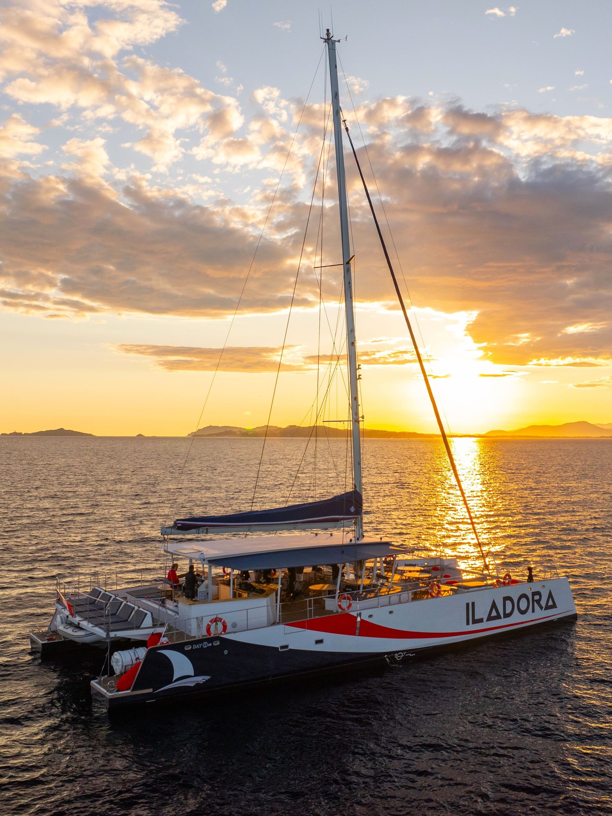 Idéale non seulement pour les amoureux de par son côté romantique, mais aussi pour les familles et les groupes d’amis de par sa convivialité, cette croisière en catamaran depuis Hyères au coucher du soleil vous offrira une sublime fin de journée en Côte d'Azur, à bord du Lladora, un maxi-catamaran de 22,85 m. Sous les couleurs chaleureuses du soleil couchant, vous profiterez de paysages magnifiques dans une atmosphère paisible en mer à la découverte du Fort de Brégançon ou de la plage de la Badine en fonction de l'option choisie.