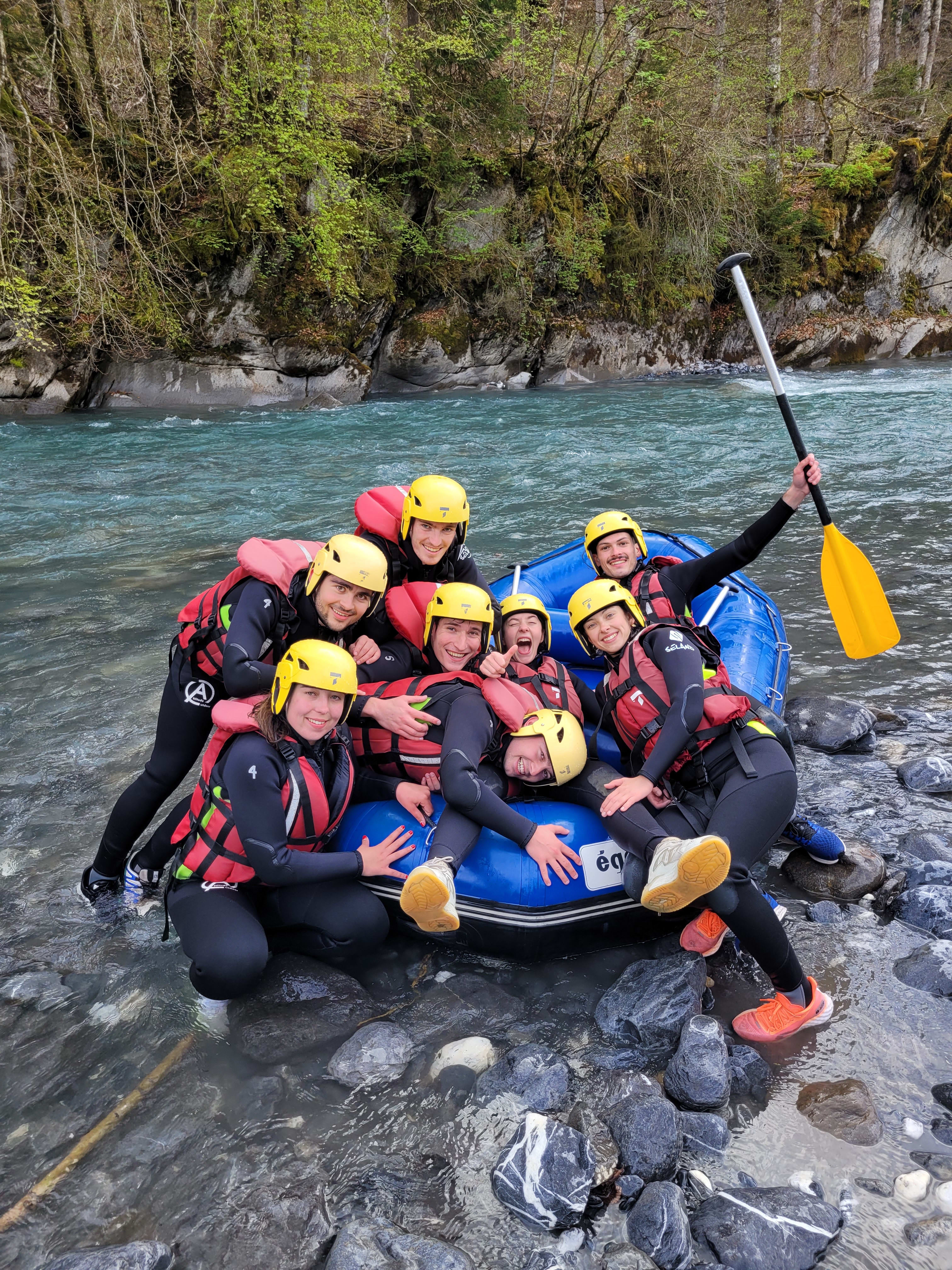 Le mini-raft est plus petit que le raft classique. Ce type de bateau peut accueillir jusqu’à 4 personnes. Il est plus petit de moitié que les rafts, mais reste relativement lourd, donc très stable. Il vous faudra donc être attentif aux mouvements de la rivière et être coordonné avec les autres membres de l’équipage afin de pouvoir le diriger sur la rivière du Giffre !