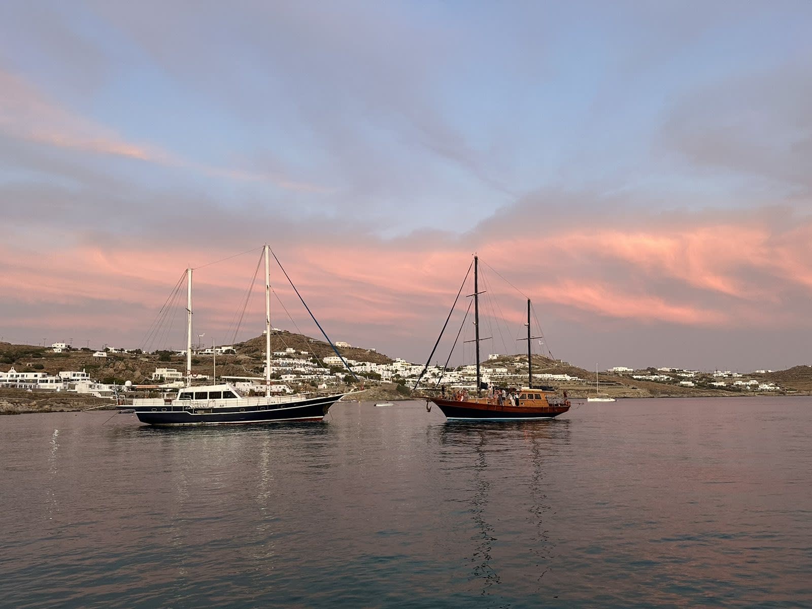 Passez 4 heures à explorer les eaux cristallines, les criques cachées et même les sites antiques de la mer Égée, avant d'admirer le spectacle des couleurs changeantes dans le ciel lors de cette incroyable croisière au coucher du soleil dans le sud de Mykonos, au départ du port d'Agios Ioannis !