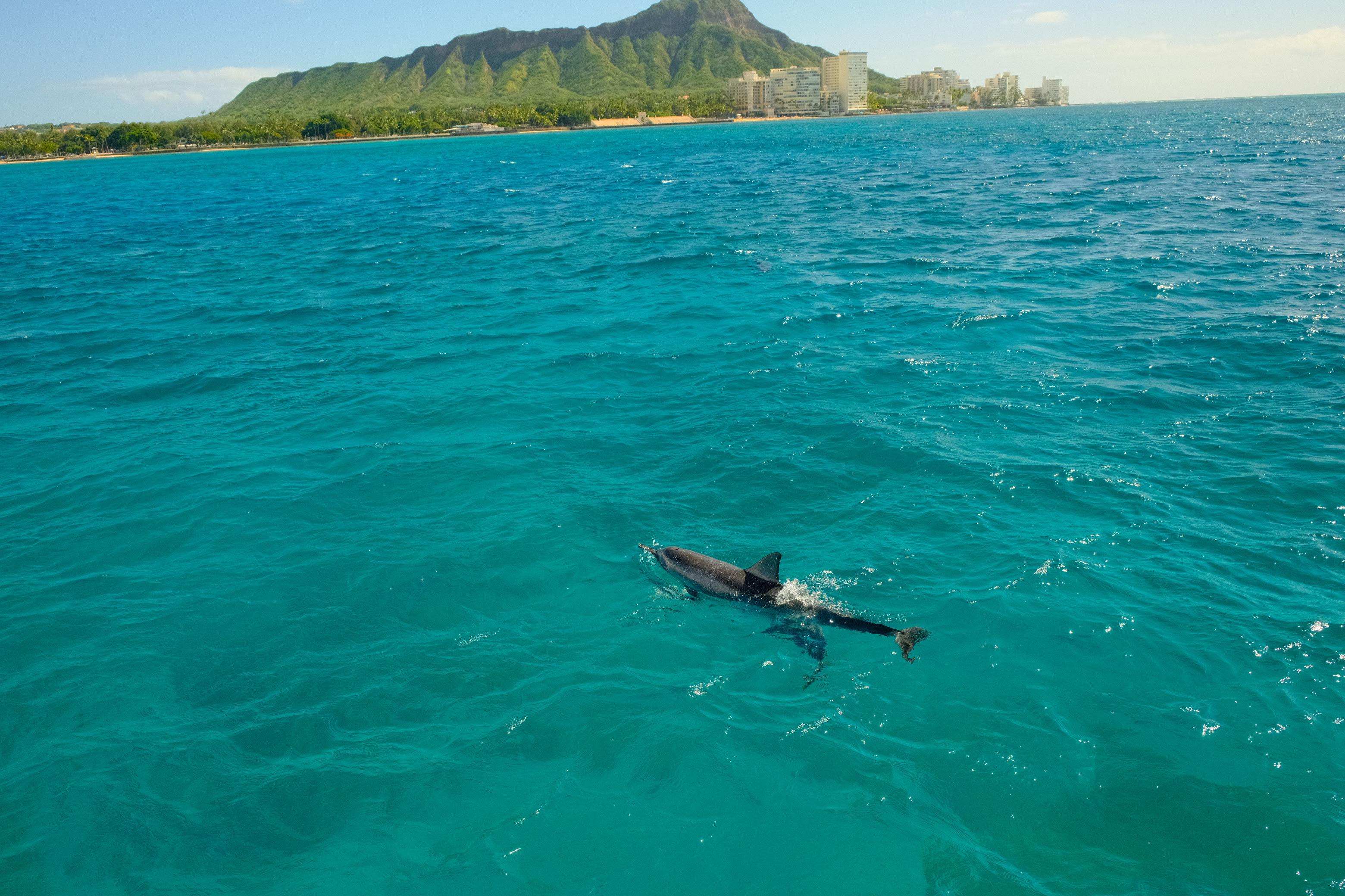 C'est depuis la mer que l'on peut le mieux observer la célèbre étendue de Waikiki, avec ses gratte-ciel, son mince croissant de sable, ses eaux cristallines et sa multitude de surfeurs ! Alors que votre croisière en catamaran s'éloigne du port en direction du site de snorkeling de Turtle Canyon, vous aurez une fabuleuse vue panoramique de la côte d'Honolulu, de l'animation de Waikiki et de l'impressionnant cratère de la tête de diamant - quelques-uns des sites les plus emblématiques d'Oahu !