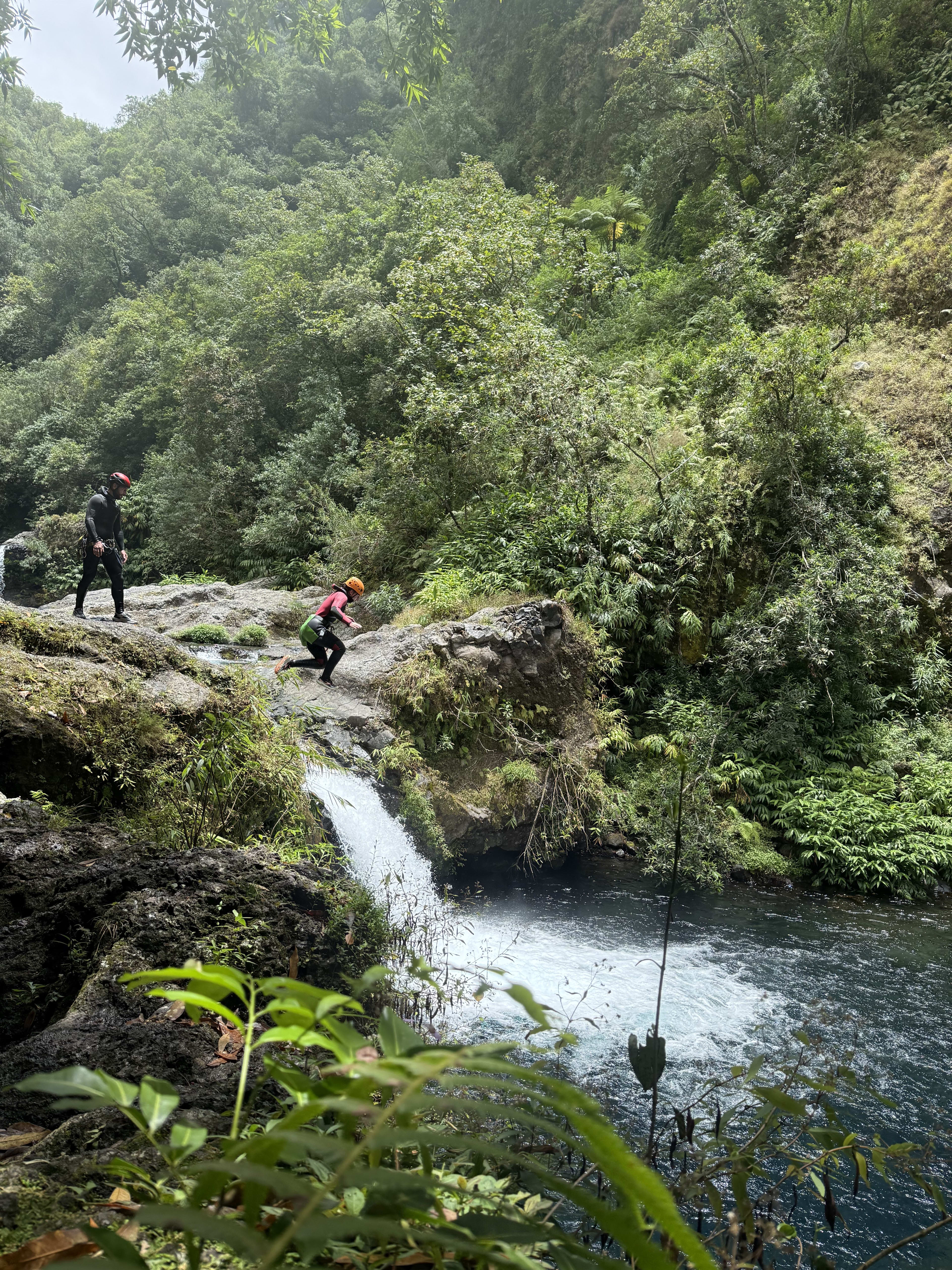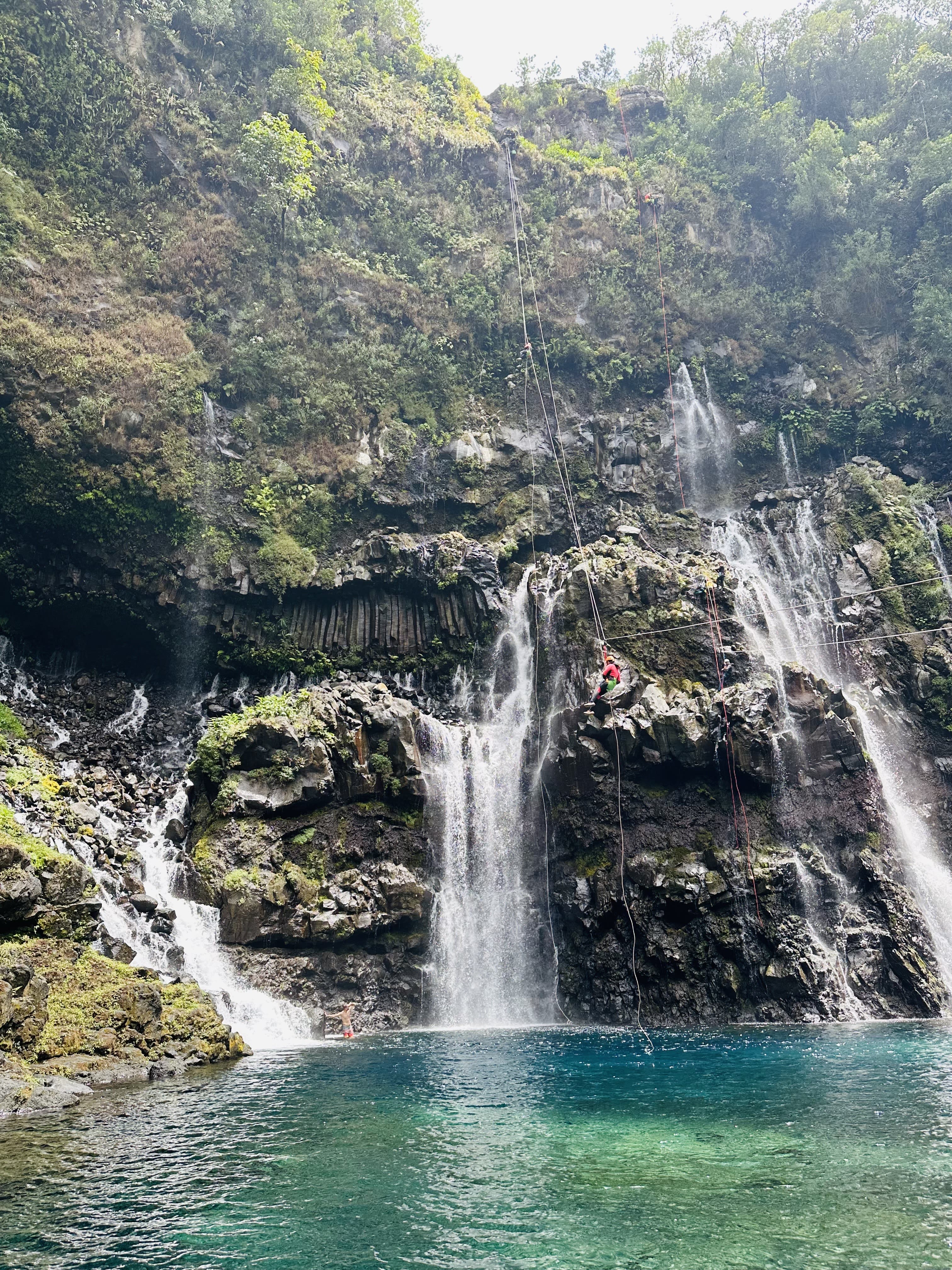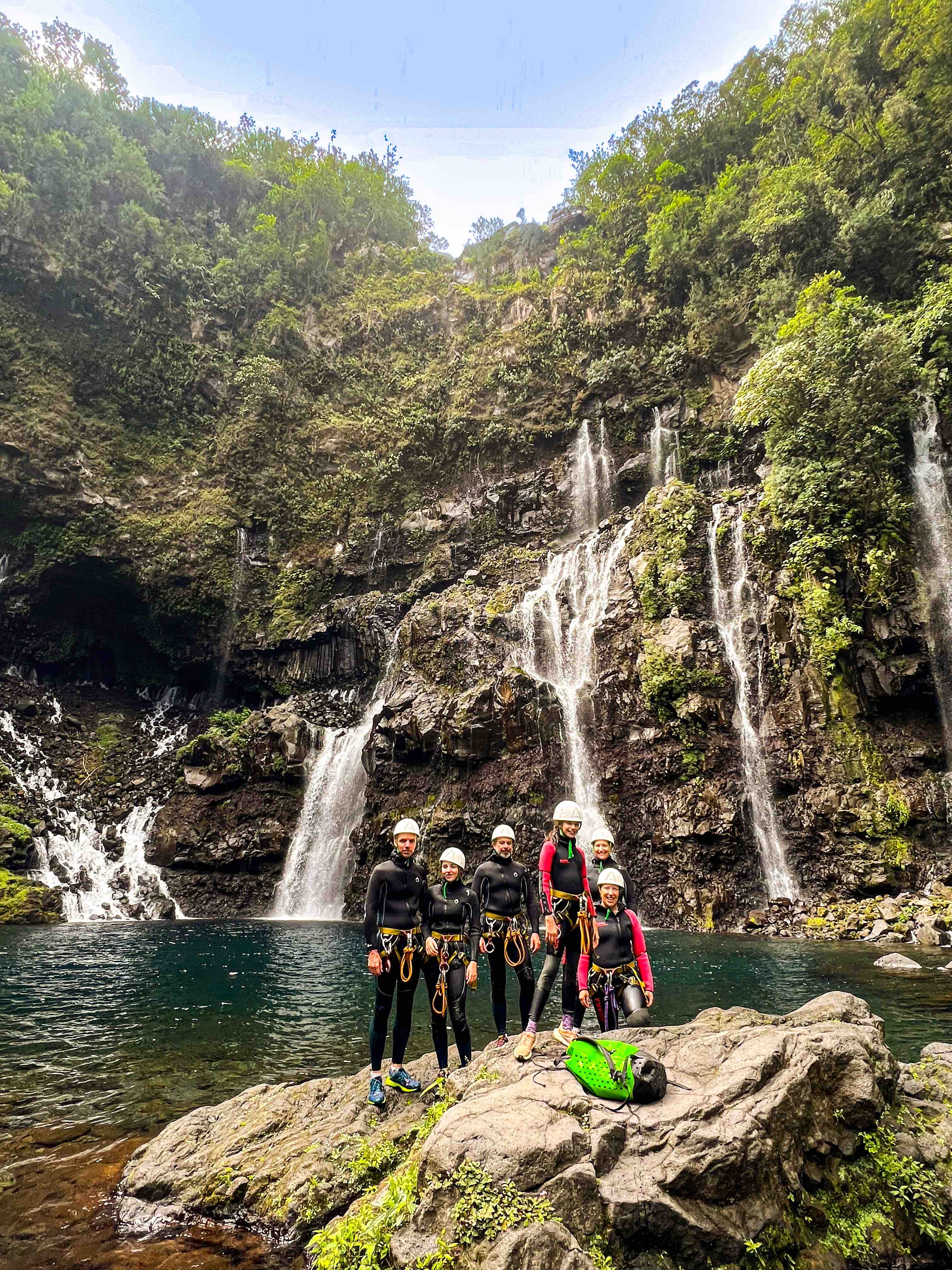 Prenez part à une aventure à la fois verticale et aquatique près de Saint-Joseph en parcourant le canyon de Grand Galet dans la rivière Langevin !