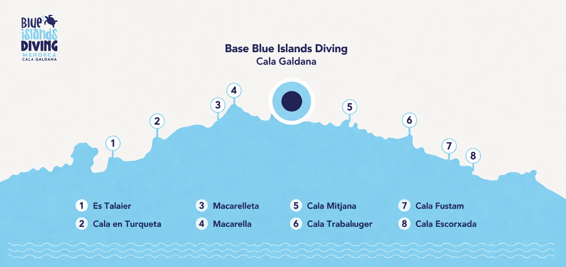 Vous découvrirez le vrai bleu de Minorque en naviguant le long de Cala Macarella et Macarelleta, Cala en Turqueta, Cala Mitjana et Mitjaneta et Cala Trebalúger. Vous découvrirez avec nous les secrets et les histoires anciennes liés à ces plages, vous entrerez dans des petites spéléologies et des recoins.