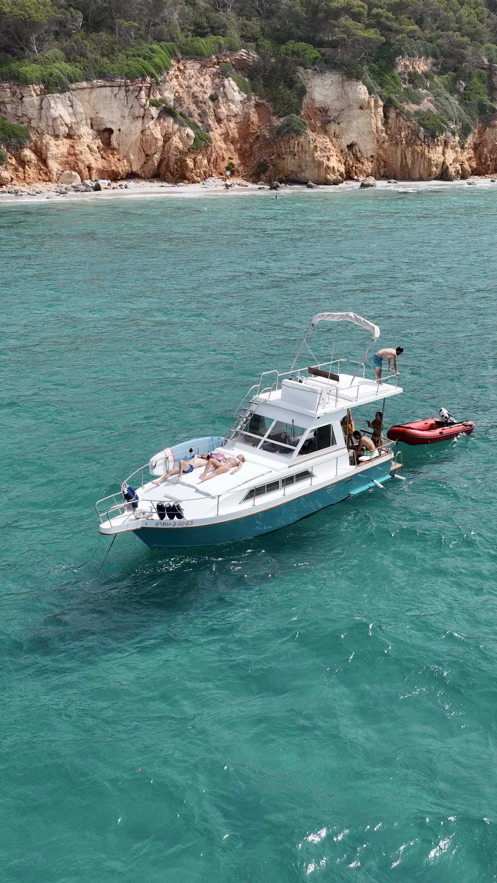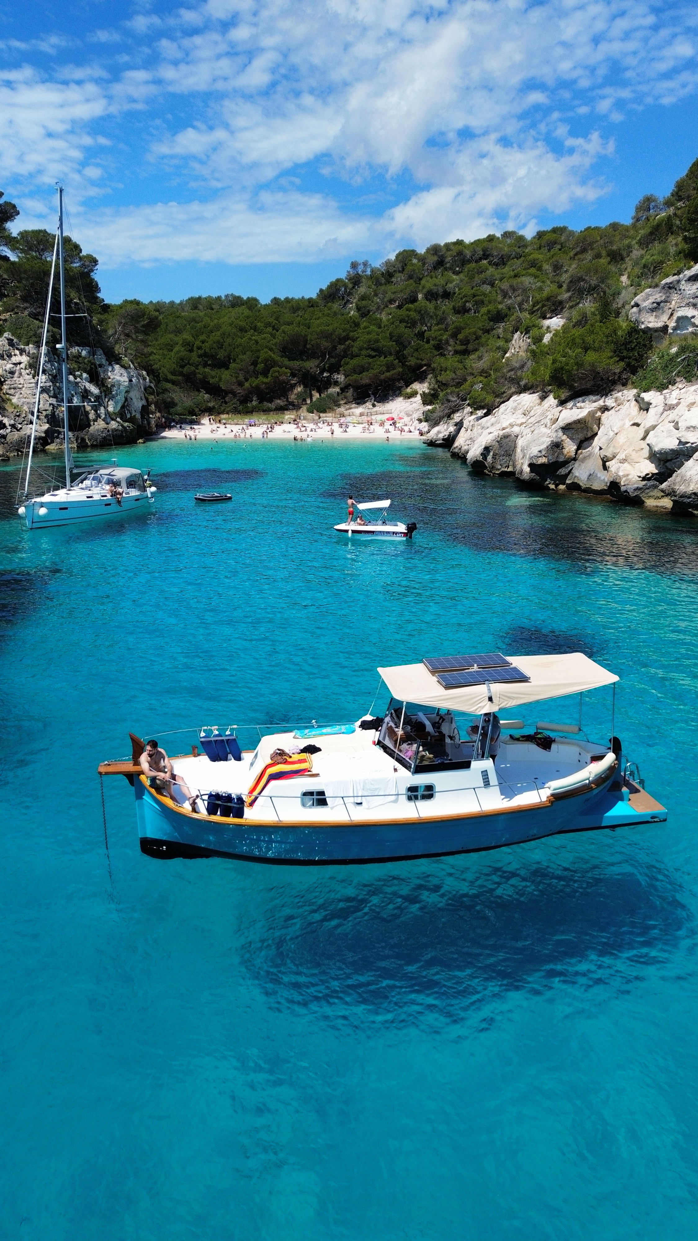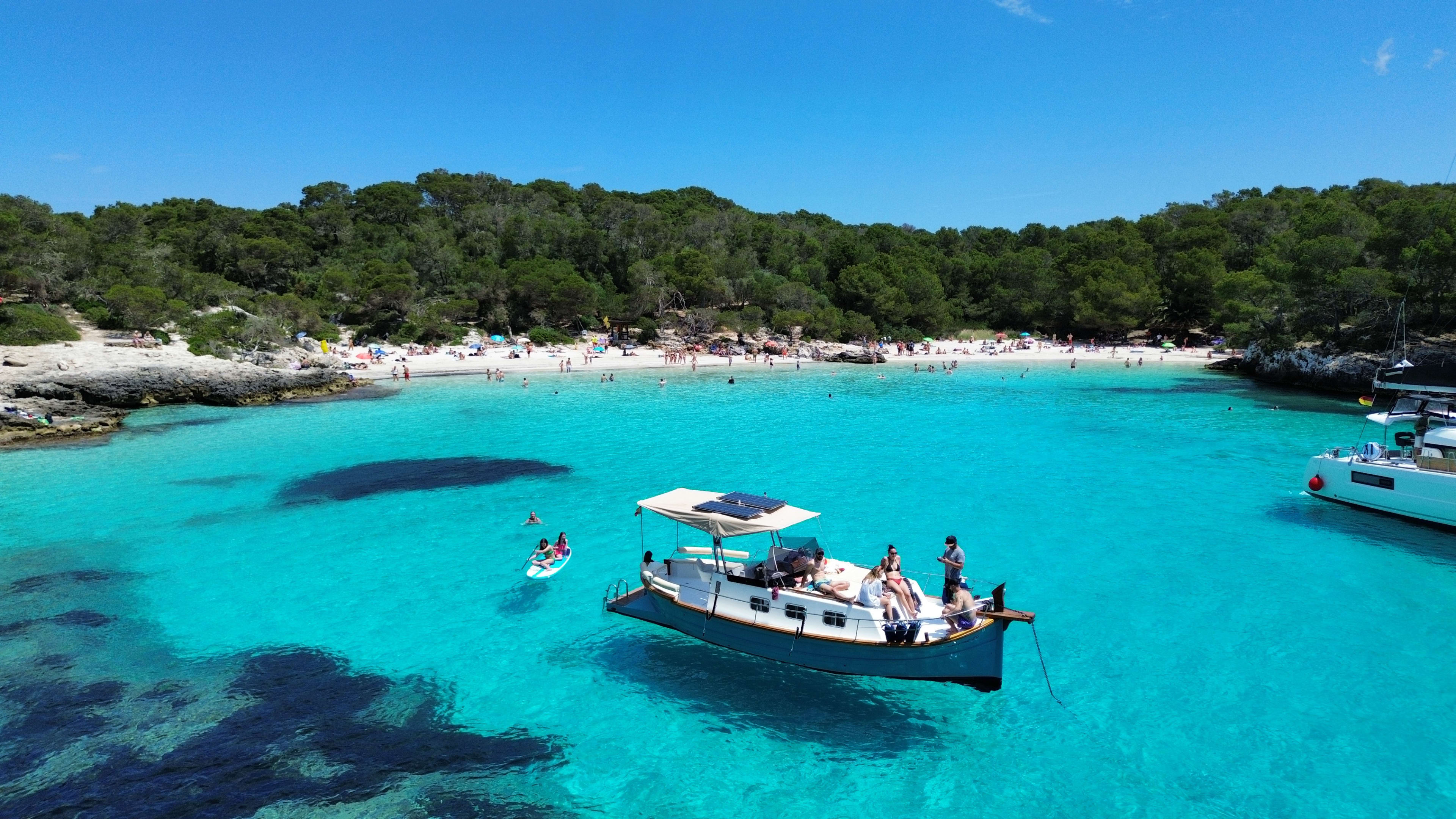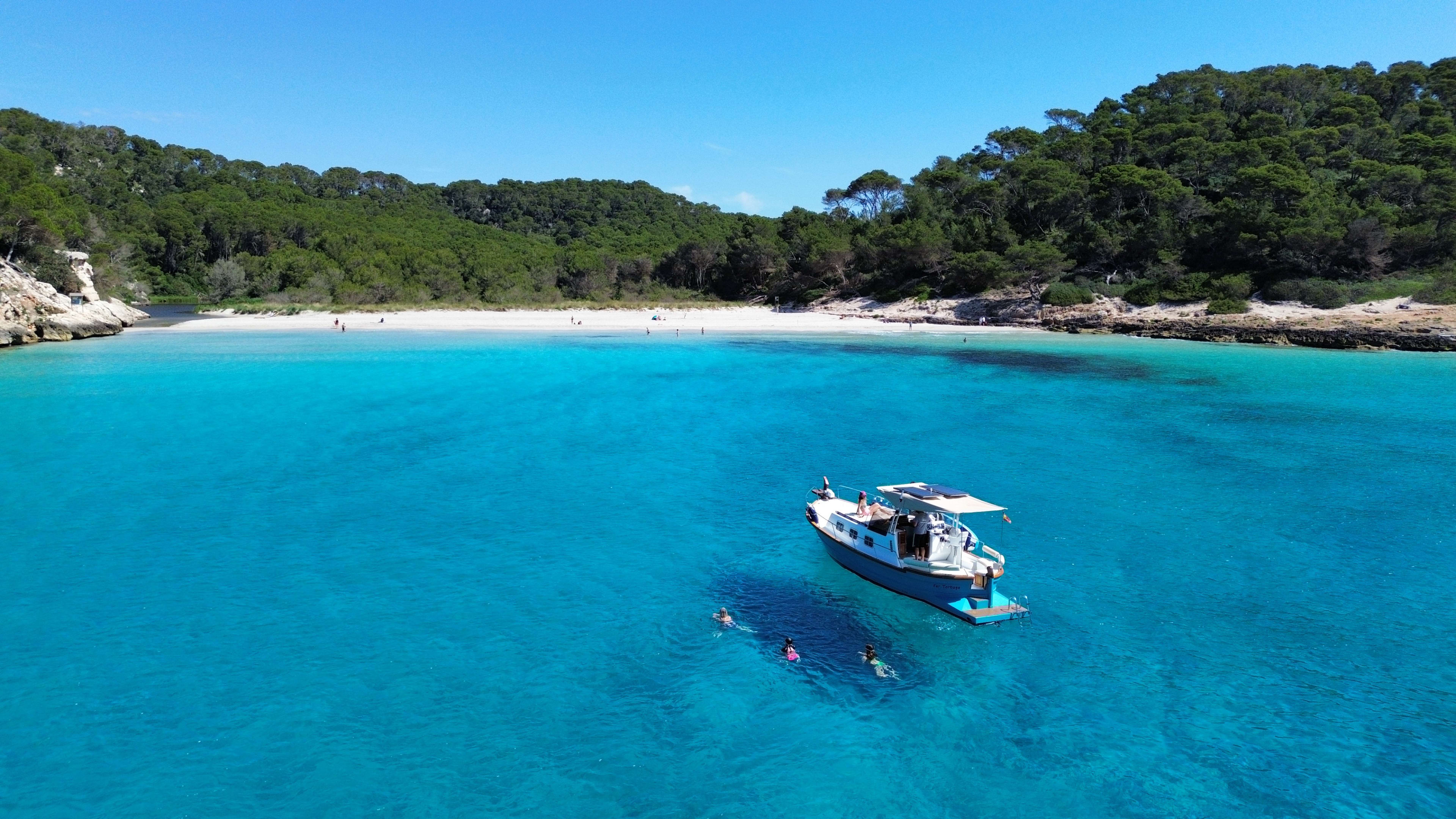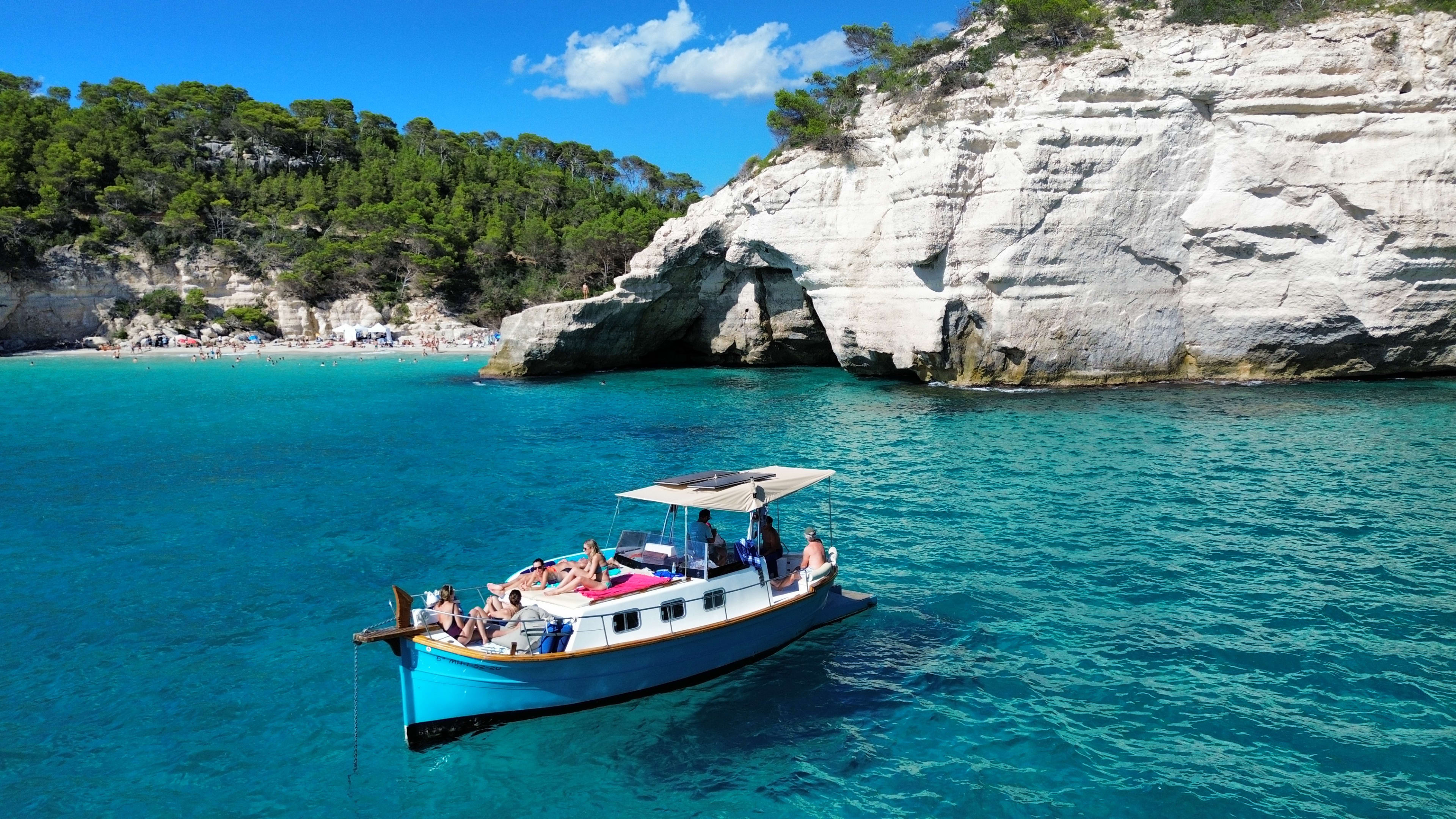 Si vous êtes à Minorque, vous devez découvrir ses belles plages et ses baies. Détendez-vous à bord du bateau pendant que vous visitez différents endroits pour contempler un paysage magnifique de forêts méditerranéennes, de falaises spectaculaires et de plages isolées.
