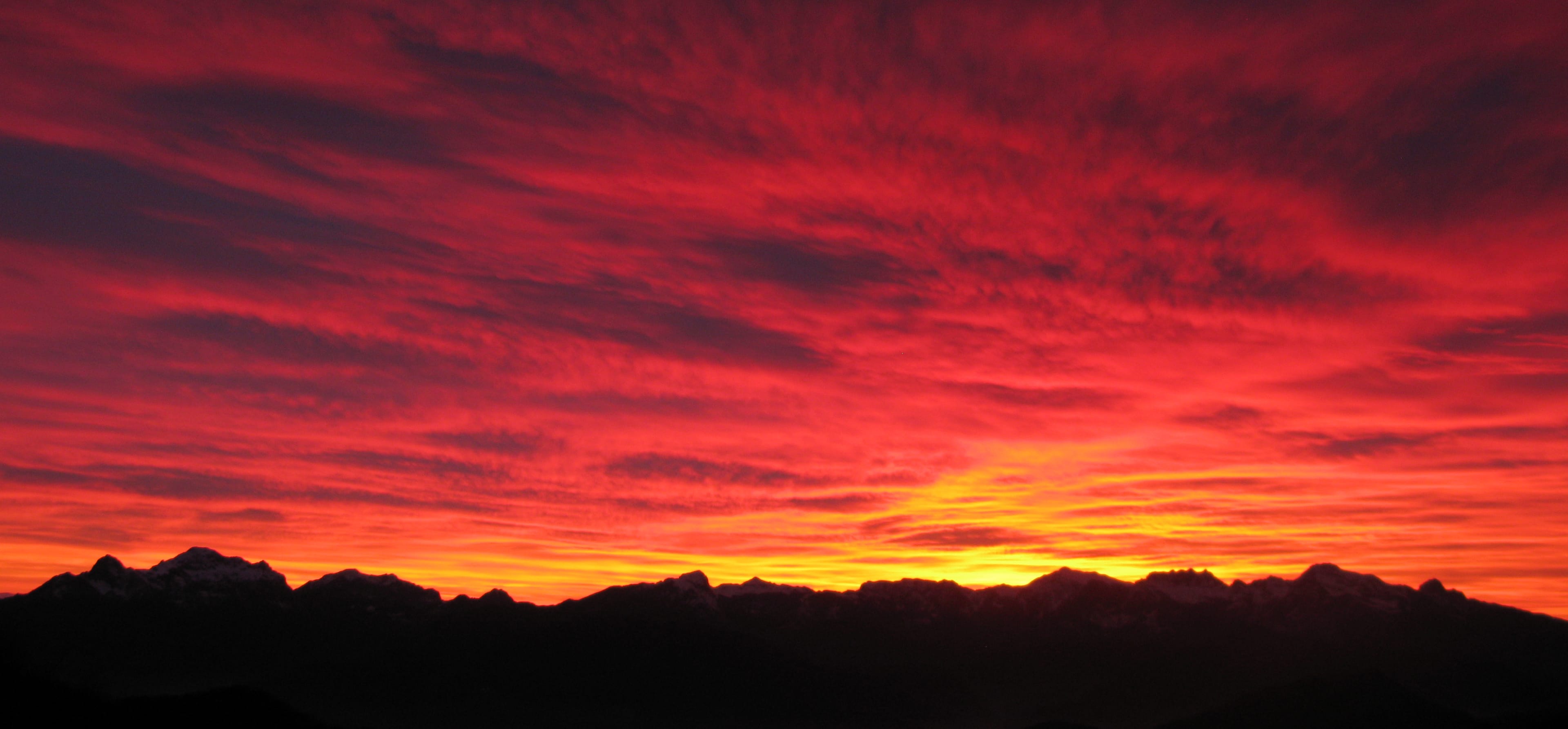 Coucher de soleil sur un pic de randonnée à Castelnuovo di Garfagnana, près de Lucca
