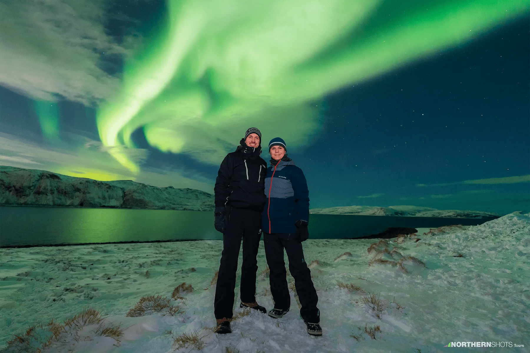 - si les aurores boréales apparaissent, les guides pourront vous aider à les prendre en photo avec votre propre appareil, mais aussi vous prendre en photo avec le leur (supplément)