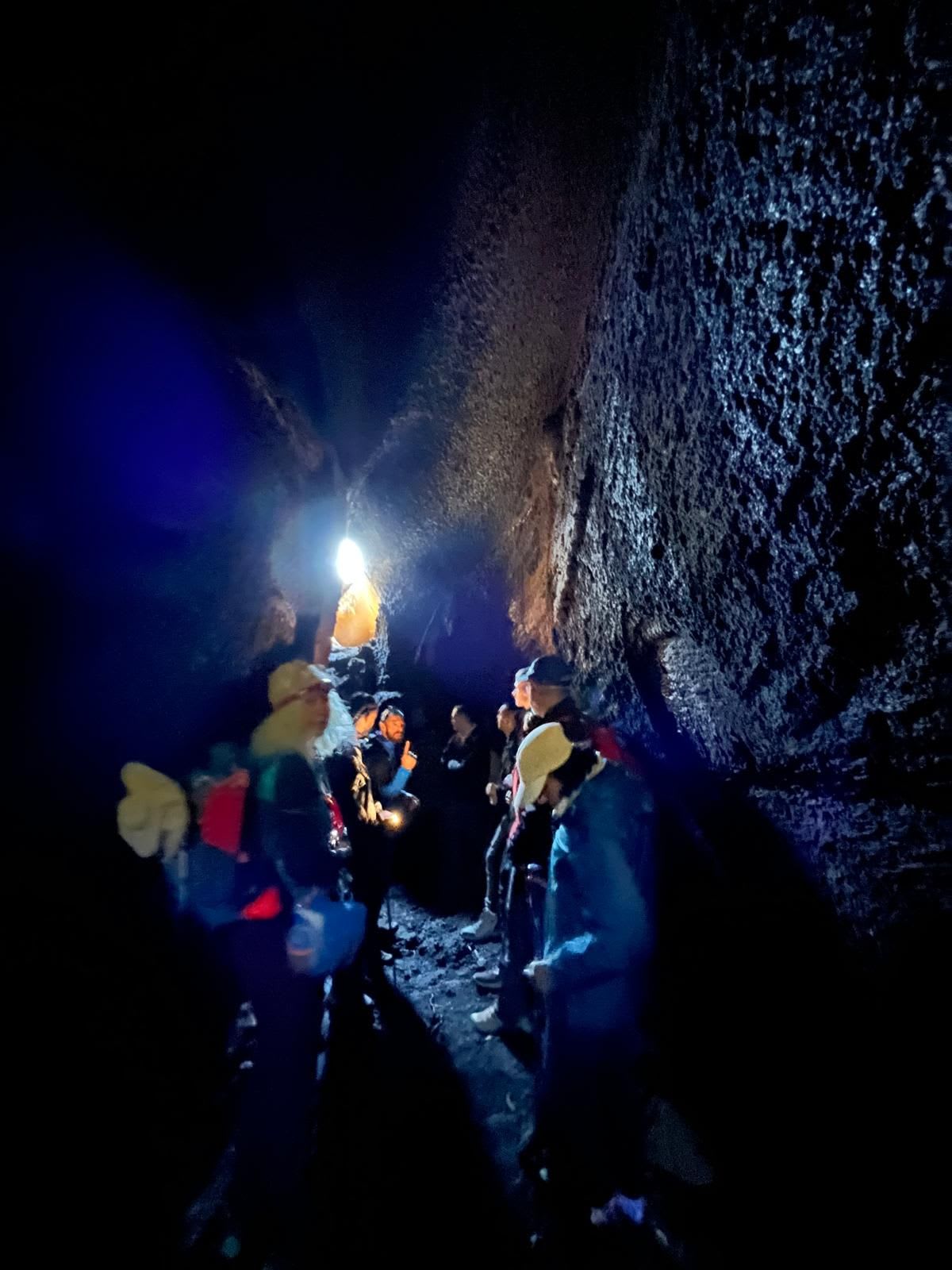 - Visite d'une grotte de lave avec casque et lampe de poche