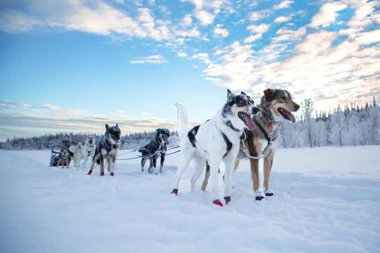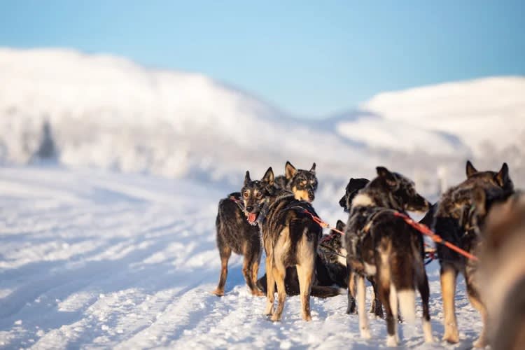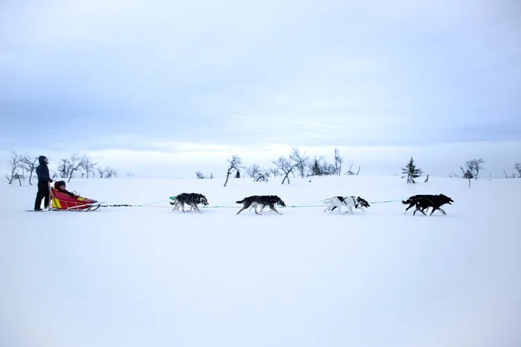 - Départ de votre excursion de 4 heures, 15 à 20 kilomètres, en chiens de traîneau sur le plateau d'Ansättenfjäll.