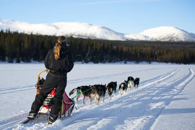 Menés par 10 à 14 huskies, vous chevaucherez le magnifique lac gelé Stor Bakvattnet, en passant par ses nombreuses îles pittoresques et avec des vues sur la forêt qui entoure le lac, ainsi que sur les Ansätten. Vous apprécierez le frisson de la traction des chiens en parcourant le circuit de 7 kilomètres planifié par votre instructeur. Enfin, vous retournerez à la ferme, caresserez les chiens qui vous ont emmené dans cette merveilleuse aventure et les laisserez aller chercher leur casse-croûte, tout en partageant un délicieux fika suédois avec votre instructeur.