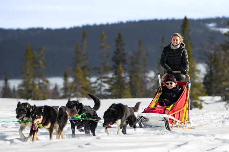 Parcourez à toute vitesse les paysages époustouflants du comté de Jämtland lors de cette excursion en chiens de traîneau au départ de Bakvattnet !