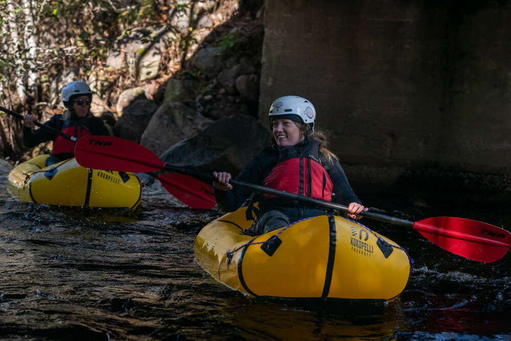 L'aventure, le packrafting à Sälen, commence au point de rencontre où vous et votre groupe (15 participants au maximum) serez accueillis par votre instructeur certifié. Après un premier briefing sur la sécurité et l'itinéraire, vous recevrez votre équipement, qui comprend un casque, une pagaie, un sac étanche, un gilet de sauvetage et votre packraft. Ensuite, vous vous mettrez en route vers le point de départ. À votre arrivée, vous marcherez jusqu'à l'eau en portant votre équipement. Votre instructeur vous présentera ensuite une introduction approfondie au packraft et aux techniques de pagayage en eaux vives.