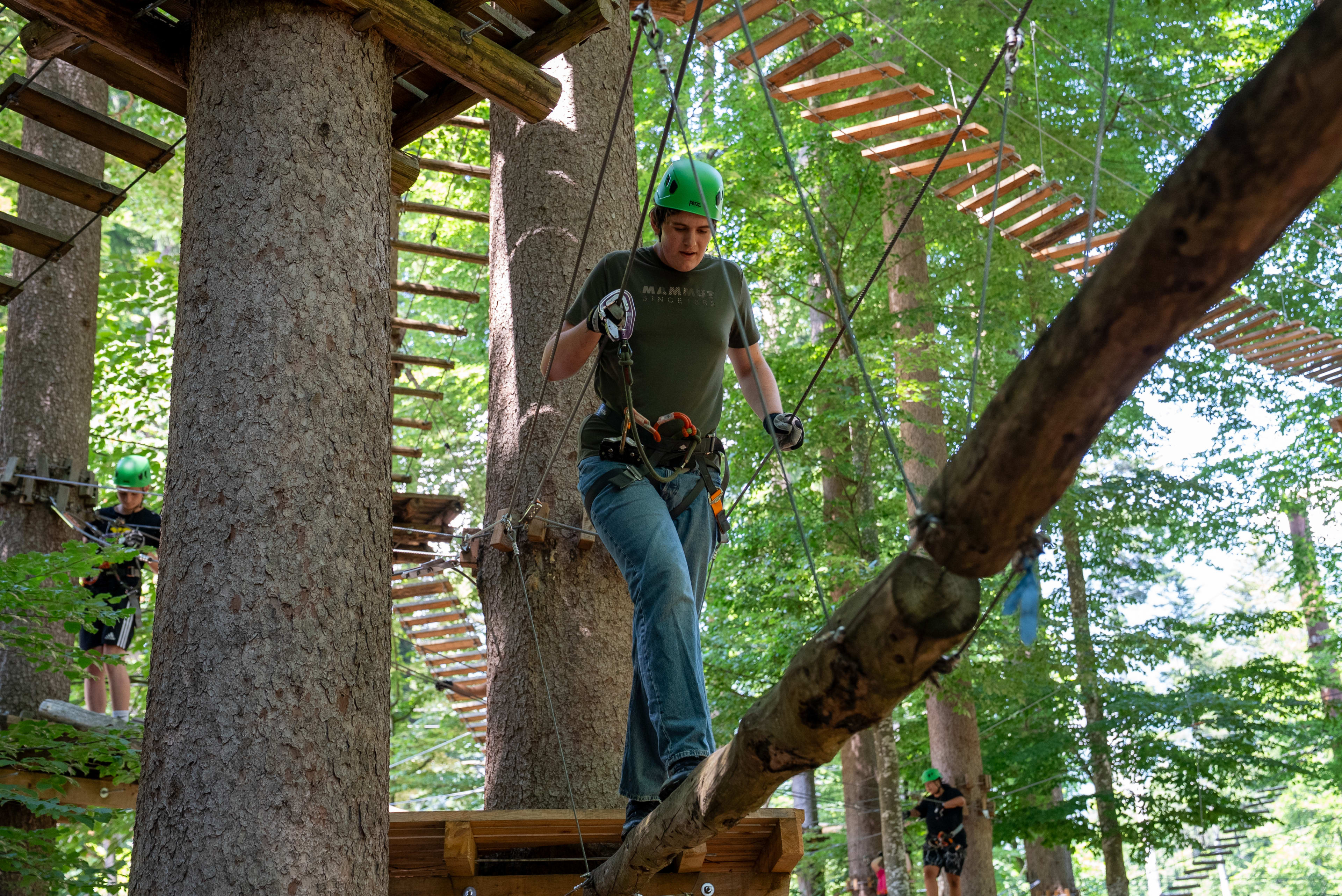 - Plus de 120 obstacles incluant tyroliennes, ponts suspendus et sauts de Tarzan.