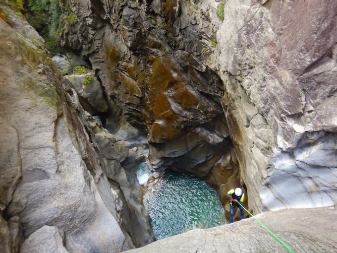 - Rappel spectaculaire de 40 mètres, presque entièrement en suspension, qui mène directement dans les profondeurs de la gorge.